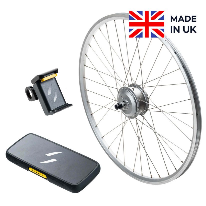 Novinka od spoločnosti SwytchBike nesie modelové označenie Swytch Conversion Kit a ide o zostavu niekoľkých dielov, ktoré jednoducho vymeníte za pôvodné. Konkrétne ide o predné koleso s integrovaným 250W motorom, ktorý ponúka max. krútiaci moment 40 Nm a je dostupné v trinástich rôznych veľkostiach a prevedeniach, takže pasuje na drvivú väčšinu bicyklov, či už so štandardnými alebo kotúčovými brzdami. Toto považujeme za veľkú výhodou, nakoľko neexistuje takmer žiadne obmedzenie v montáži.