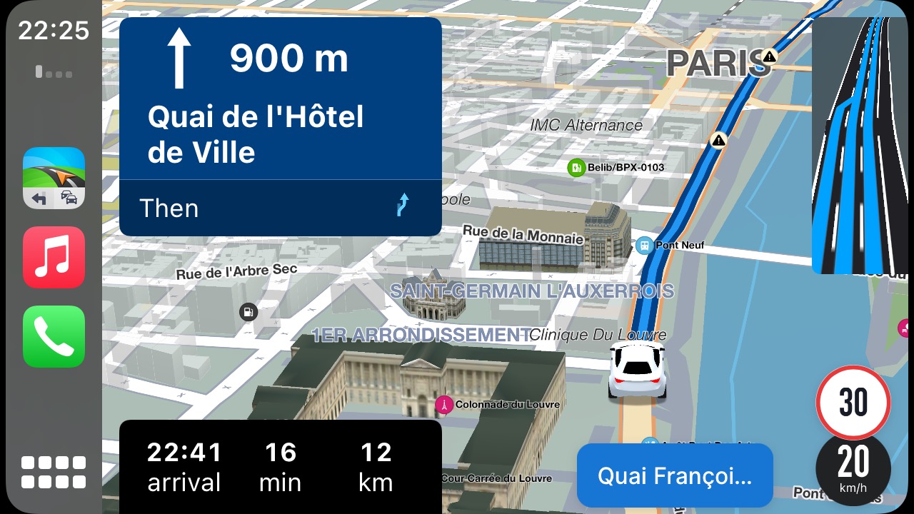 Používatelia systému iOS môžu zobraziť funkciu Asistent jazdných pruhov aj cez CarPlay. Ak má používateľ naplánovanú udalosť s presnou adresou v aplikácii iCalendar, po pripojení navigácie Sygic cez CarPlay mu navigácia ponúkne navigačné pokyny na miesto stretnutia vo vyhľadávaní.