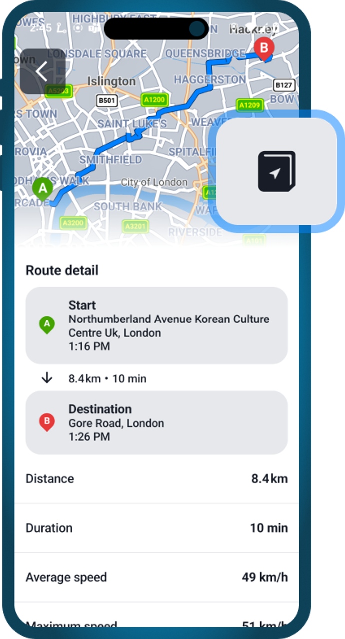 Sygic teraz ponúka aj osobné štatistiky jazdy v novom Cestovnom denníku. Táto funkcia umožňuje vodičom sledovať a analyzovať svoje jazdné návyky vrátane počtu najazdených kilometrov, času a priemernej rýchlosti. Tieto informácie môžu používateľom pomôcť optimalizovať ich budúce cesty. Súhrn základných údajov o ceste Sygic poskytuje vodičom po každej jazde.