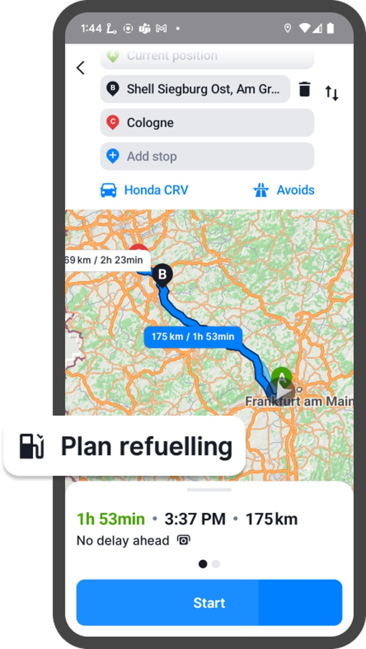 Nová funkcia automatického tankovania rieši obavy v súvislosti s dojazdom tým, že ponúkne vodičom zastávky na čerpacích staniciach už pri plánovaní trasy. Ak používatelia zadajú do aplikácie svoj aktuálny dojazd a stav paliva, získajú návrhy kde natankovať počas cesty.