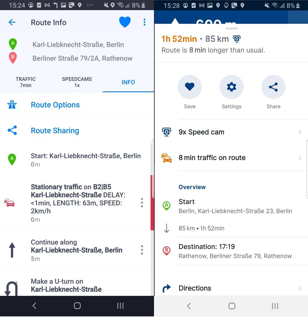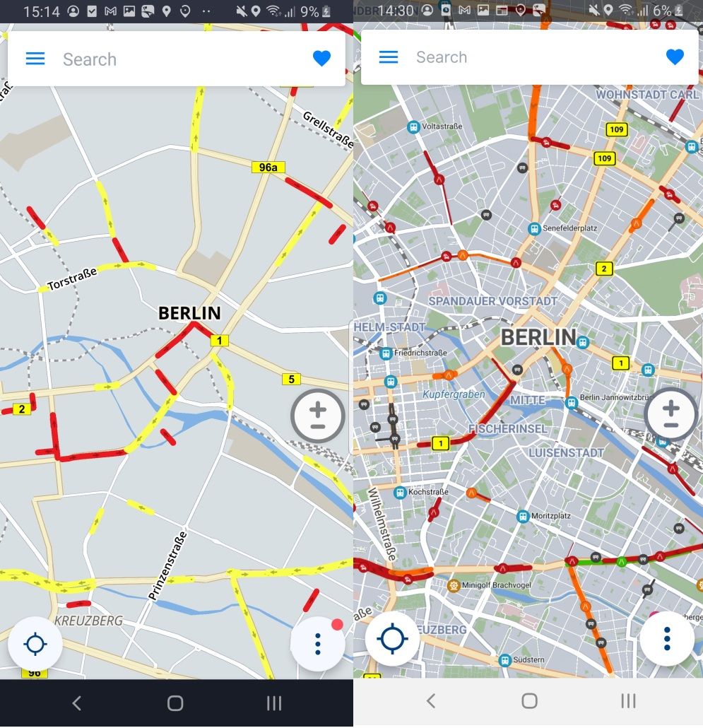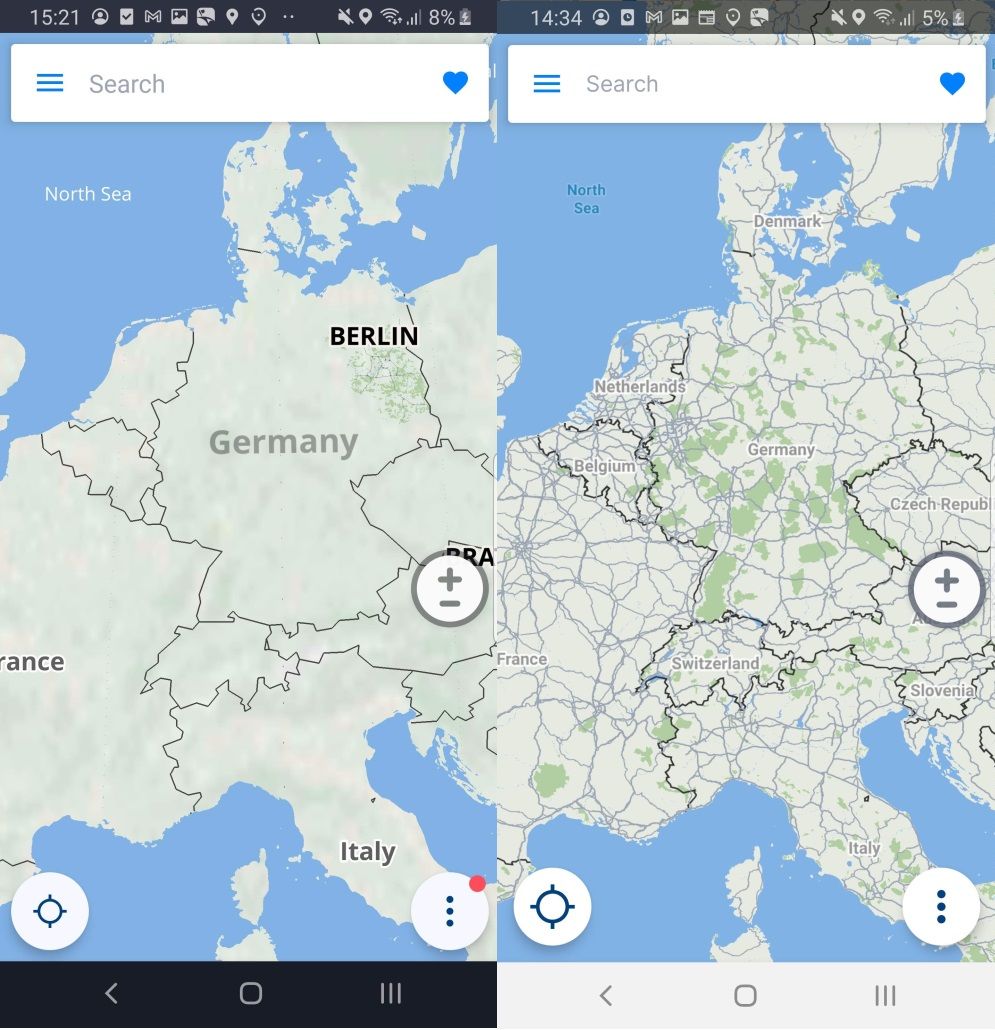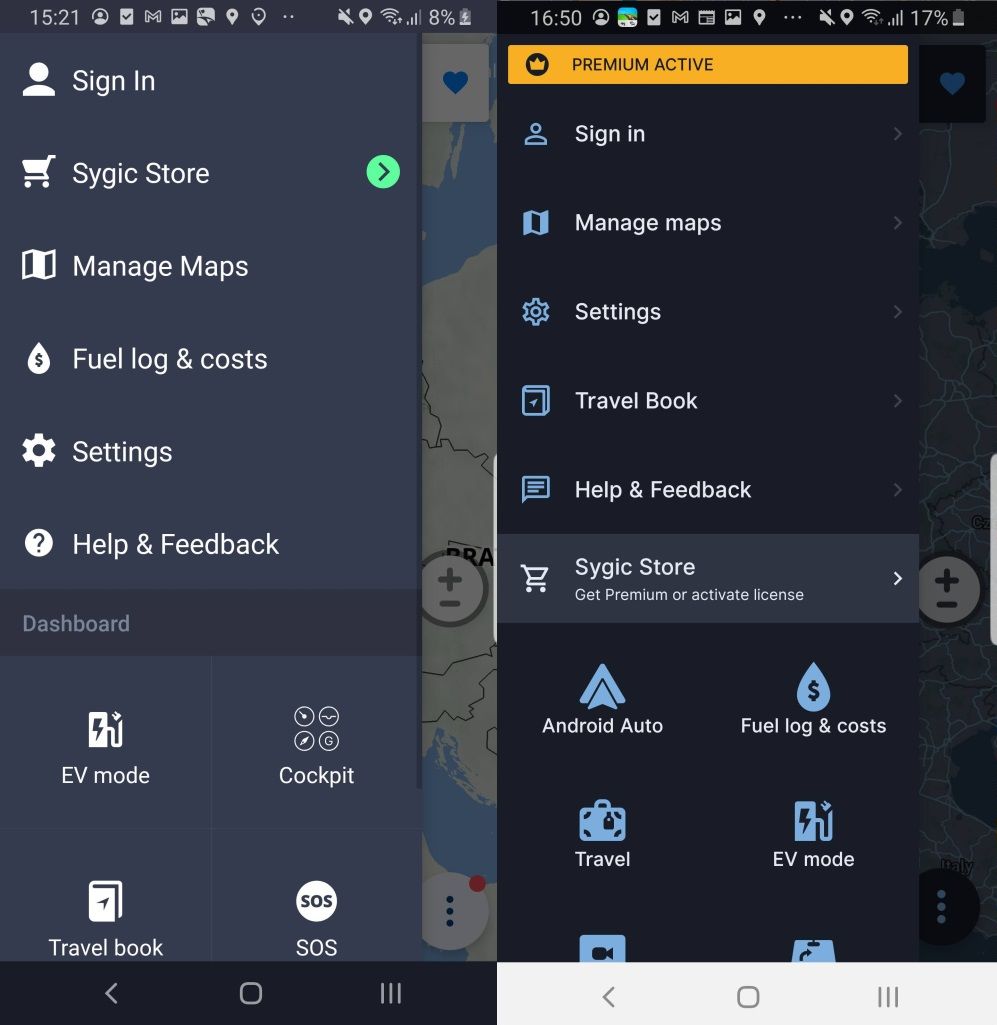 Porovnanie dizajn starej a novej verzie aplikácie Sygic pre Android: