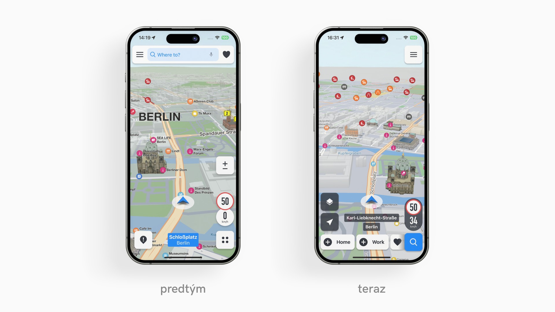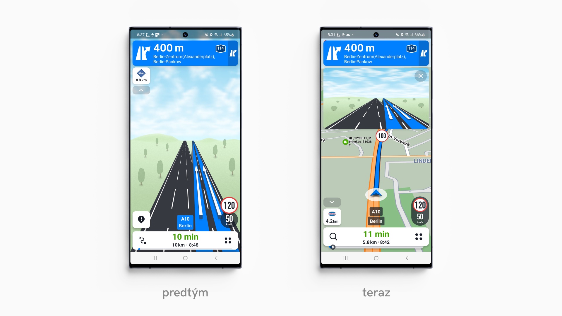 Zmenilo sa oveľa viac ako len farby a kontrasty. V novej navigácii je lepšie usporiadanie všetkých informácií a údajov v navigácii. To má podporiť čitateľnosť a intuitívne ovládanie, aby sa používanie aplikácie čo najviac zjednodušilo. Vylepšené menu, modernejší režim jazdy a nové prvky zdokonaľujú prostredie navigácie ako inteligentného asistenta na cestách. Nové rozhranie je dostupné pre Android a čoskoro ich dostanú aj používatelia operačného systému iOS.