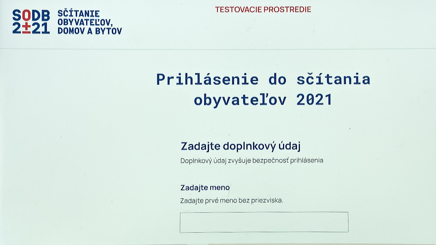 Prvý krok na prihlásenie sa do sčítacieho formulára rodné číslo. Systém vás po jeho zadaní vyzve k overeniu zadaním doplnkového údaja. Doplnkový údaj zvyšuje bezpečnosť prihlásenia, ide o údaj, ktorý poznáte iba vy alebo napr. rodinný príslušník, ktorý vám pomáha so sčítaním.