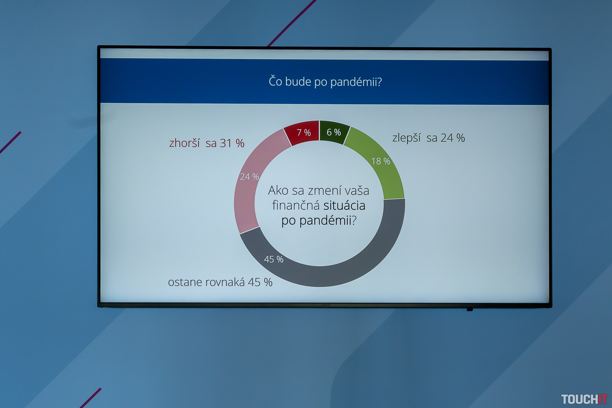 Pandémia mení správanie Slovákov. Takmer všetci dnes tvrdia, že si svoje financie chcú strážiť viac. Deväť z desiatich opýtaných potvrdilo, že plánujú vyhľadávať najvýhodnejšie ceny a ponuky. Väčšiu finančnú rezervu si chce vytvárať 84 % ľudí a až 72 % zvažuje hľadať viac zdrojov príjmu. Kým pred koronakrízou si drvivá väčšina z nás užívala stabilný príjem, takmer pätina Slovákov dnes očakáva zhoršenie, pričom počet ľudí s nestabilným príjmom sa zdvojnásobí. Hlavným zdrojom príjmov Slovákov zostáva mzda zo zamestnania, očakáva sa pokles príjmov z podnikania a väčšia závislosť na štátnych dávkach.