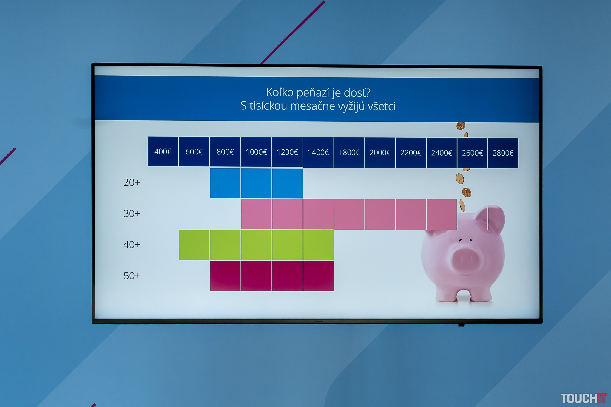 Prázdnu peňaženku podľa prieskumu aspoň raz v živote zažilo sedem z desiatich ľudí. Väčšina (58 %) z nás je v ťažších časoch aktívna a premýšľa, ako znovu peniaze zarobiť, zvyšok sa skôr uskromní a čaká, až zase peniaze budú. Na otázku, koľko peňazí je dosť, odpovedajú jednotlivé vekové skupiny rôzne. Kým dvadsiatnikom je 1 000 eur viac než dosť, tridsiatnici by potrebovali aspoň 2 000 eur. Štyridsiatnici viac prepočítavali podľa členov domácnosti. Optimum má relatívne široké rozpätie medzi 800 – 1 500 eur na jedného člena rodiny. Niektorí päťdesiatnici by boli úplne spokojní s 900 eurami.