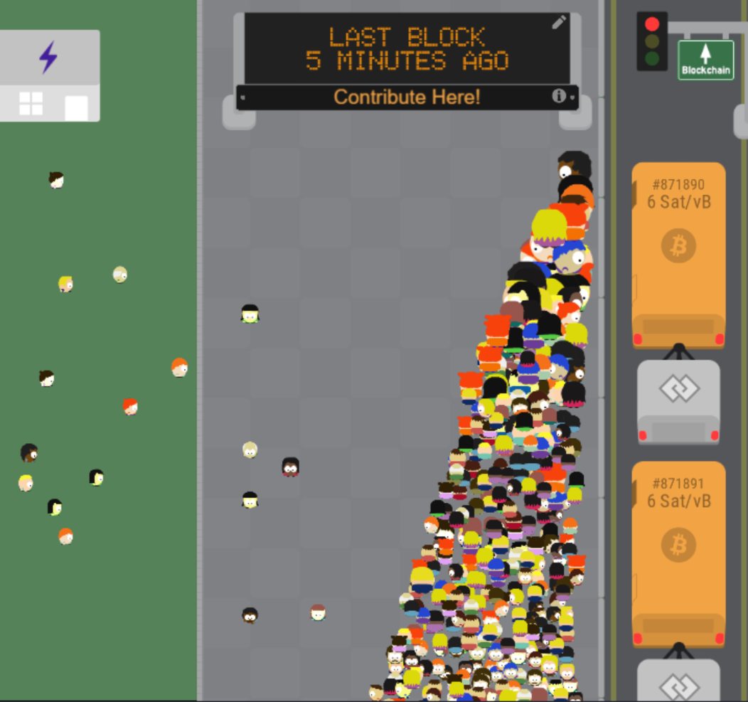 Na sledovanie transakcií, a to nielen v rámci BTC, ale aj iných kryptomien, môžete použiť stránku nazvanú Bitcoin Transaction Visualizer. Animácie postavičiek zobrazujú jednotlivé transakcie a po naplnení autobusu sa dosiahne vyťaženie 1 bloku.