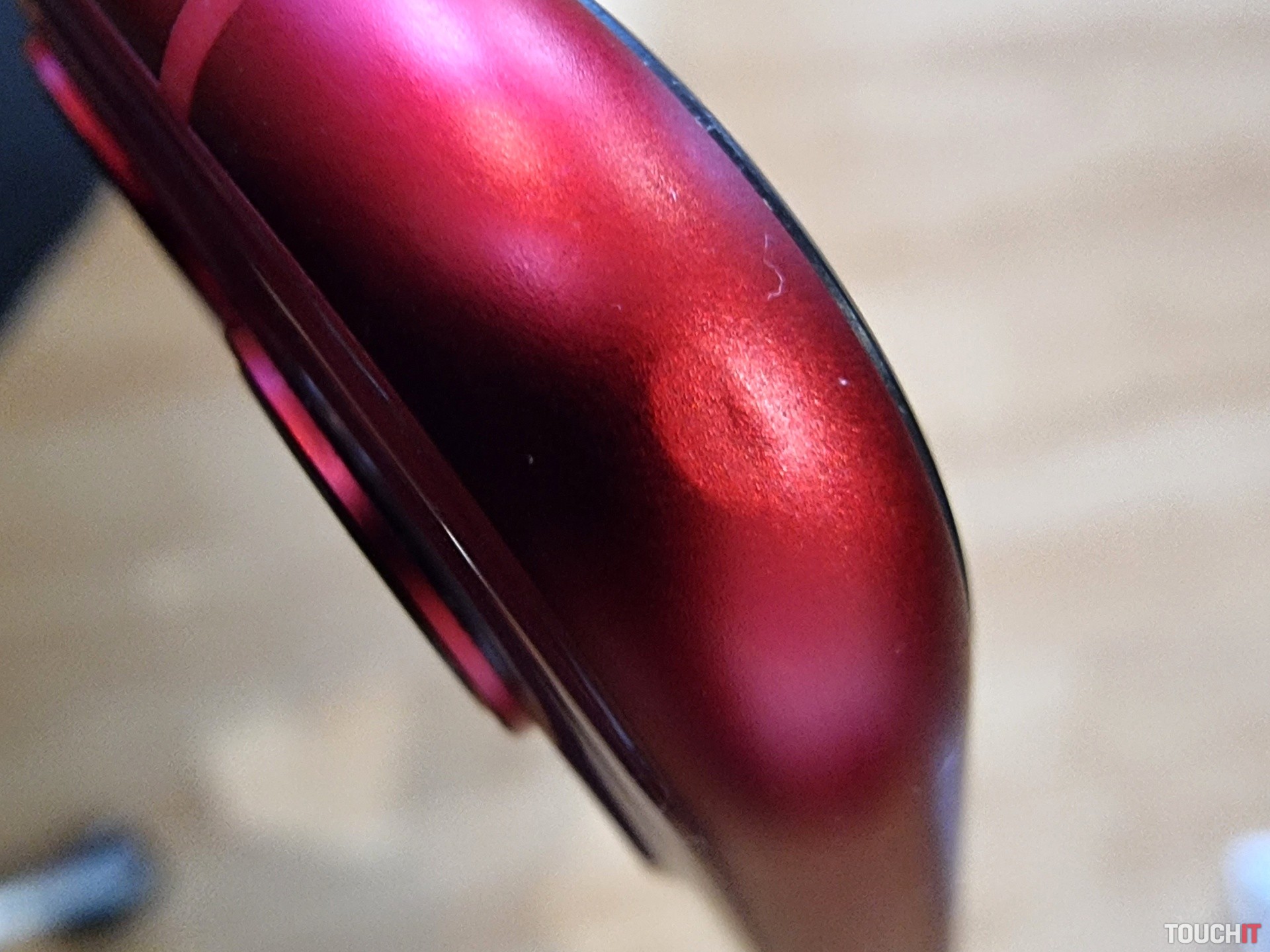 Telefón sme prezreli veľmi podobne, nenašli sme na ňom viditeľné odreniny či škrabance na displeji. Úplne detailný pohľad potom odhalil menšiu odreninu na pravom hornom rohu telefónu. Pravdepodobne narazil na dosku stola. Je to naozaj nepatrná chybička krásy.