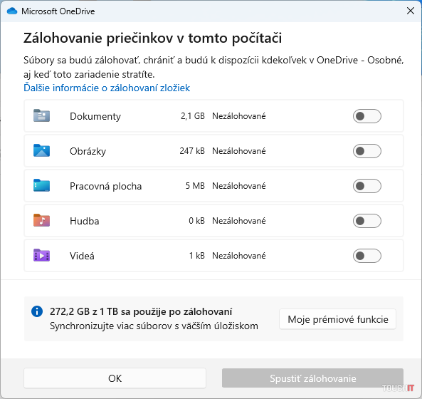 Ďalšia zmena, ktorá sa nedá prehliadnuť, je informácia o zálohovaní konkrétnych adresárov. V tomto prípade ide len o tesnejšiu integráciu služby OneDrive do Prieskumníka, pričom toto tlačidlo, ktoré umožní spustenie zálohovania, sa zobrazuje len v podporovaných adresároch. Aj nateraz platí, že ide o adresár z používateľského profilu a nie je možné si týmto spôsobom na OneDrive kopírovať iné adresáre. Nevýhodou je, že takisto nie je možnosť zvoliť, ktoré adresáre v rámci podadresárov sa majú zálohovať.