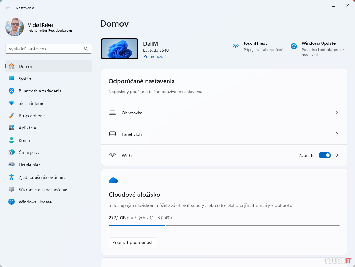 Jemnými úpravami prešlo aj okno Nastavenia. Má teraz novú položku označenú ako Domov. V nej nájdete položky v rámci odporúčaných nastavení, prehľad vášho cloudového úložiska, ako aj ďalšie položky, napríklad na zmenu témy operačného systému. Upravili sa aj niektoré iné časti, napríklad Sieť a internet, konkrétne položka Wi-Fi. Ide o mierne doladenia ako napríklad odlišné usporiadanie položiek alebo úprava ich veľkosti ako napríklad niektorých ikon.