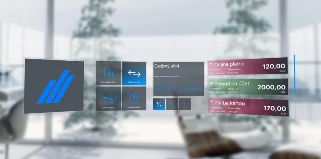 Aplikácia Tatra banka pre okuliare Microsoft Hololens
