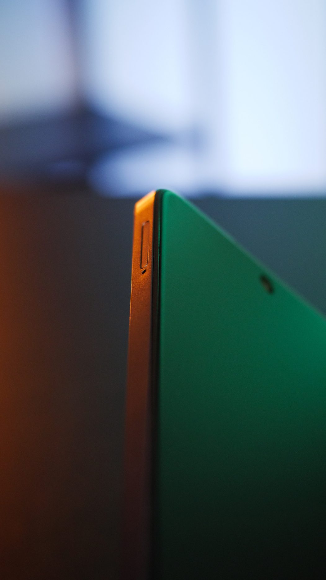 Samotná predná strana vyzerá inak. Je to dané tým, že displej má špeciálnu konštrukciu a jeho technologická výhoda je zapracovaná priamo v displeji. Nejde teda len o elektronickú podobu vo forme nastavenia a úpravy farieb. Displej je certifikovaný na zníženú produkciu modrého svetla a má tri režimy fungovania. Tie sú šetrné voči namáhaniu očí a svojím výzorom simulujú displej v elektronických čítačkách kníh.