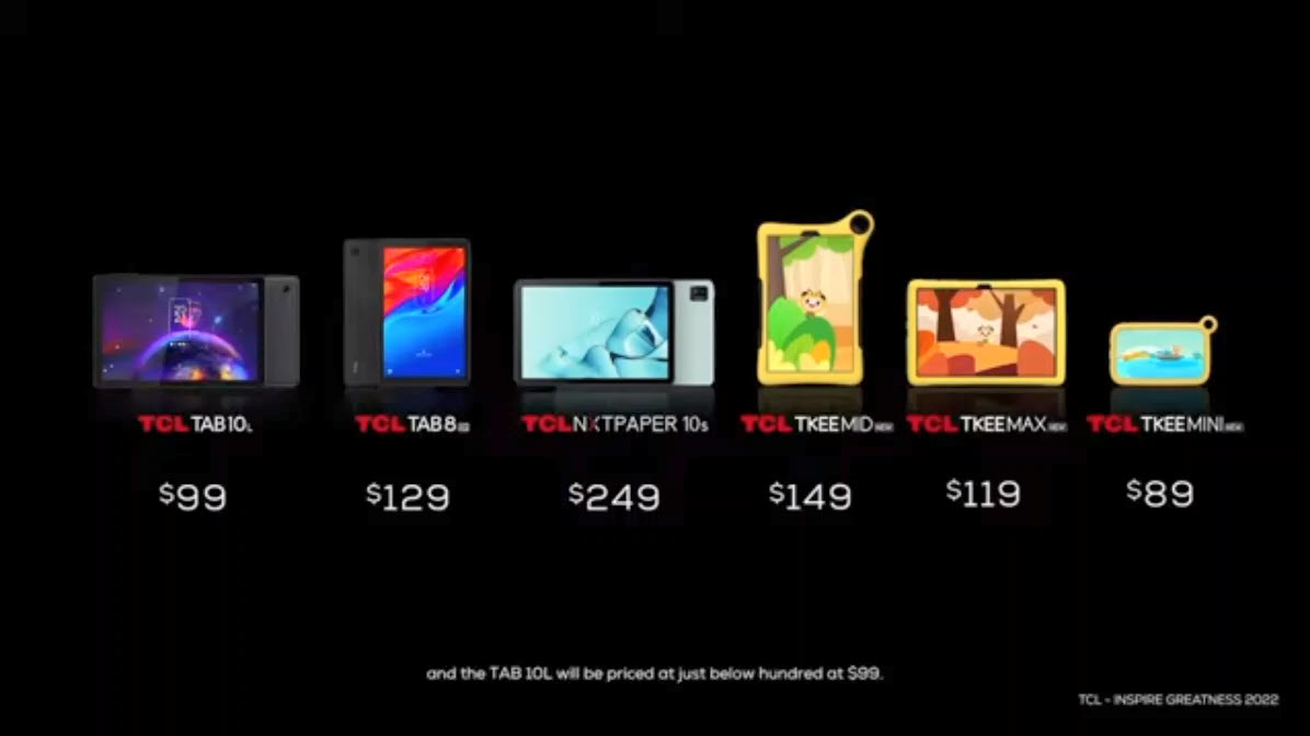 Na veľtrhu CES 2022 TCL ukázalo tiež viacero nových tabletov. Patrí medzi ne TCL NXTPAPER 10s s displejom podobným papieru. Displej je zameraný na ochranu zraku. O tomto tablete pripravujeme špeciálny článok. Nasledoval ľahký tablet TCL TAB 8 4G zameraný na učenie a kreativitu a TCL TAB 10L vhodný na zábavu ale i prácu.