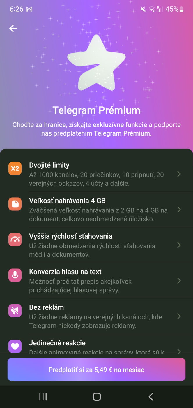 Služba Telegram Prémium je už dostupná aj na Slovensku.