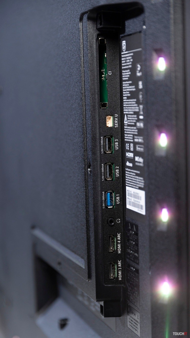 V zadnej časti 4 HDMI vstupy s podporou vysokej snímkovej frekvencie pre konzoly Xbox série X a PlayStation 5. HDMI 2 podporuje eARC, ak by ste napr. chceli pripojiť ďalší externý soundbar k tomuto televízoru.
