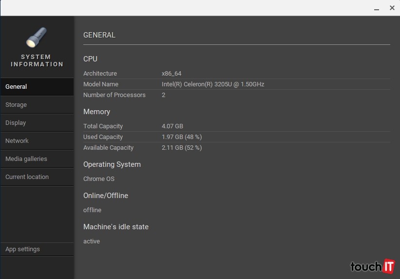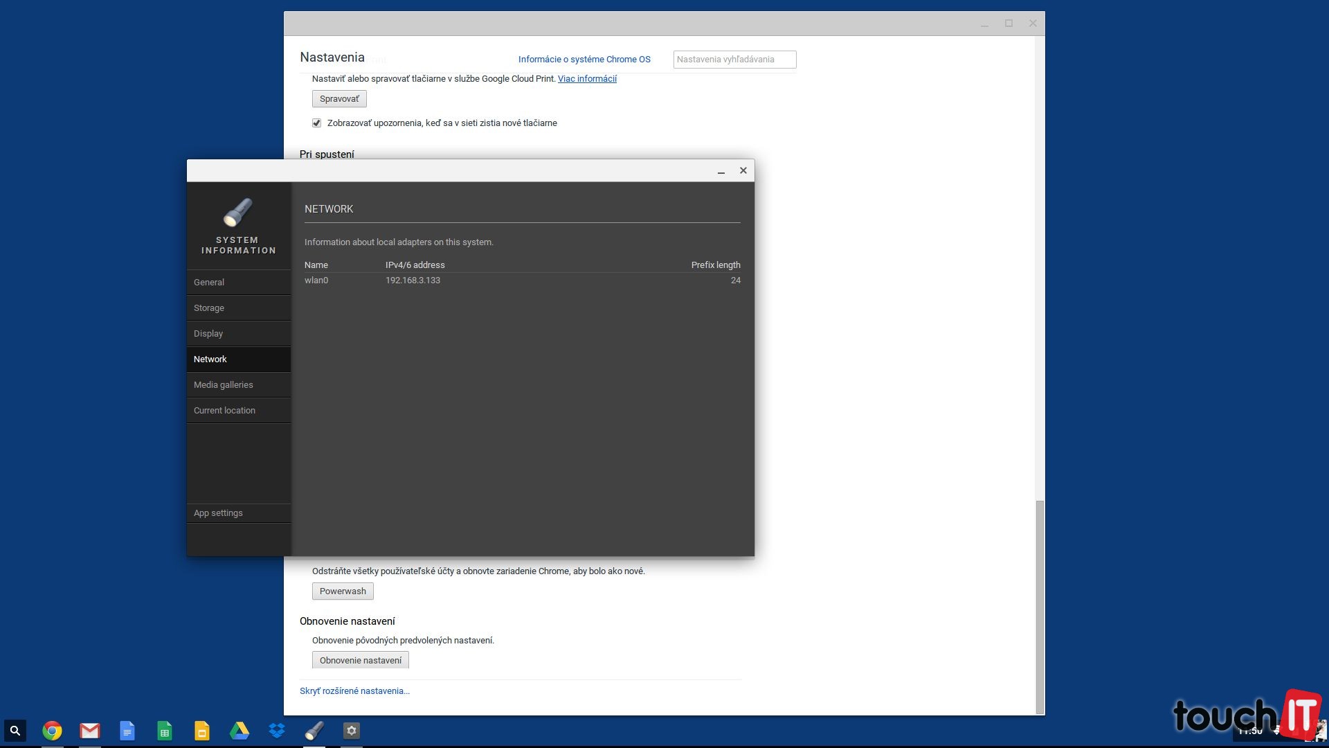 Variantov Chromebookov je mnoho. Líšia sa veľkosťami uhlopriečky aj ostatnými parametrami. V našej konfigurácii sme mali model s procesorom Intel Celeron 3205U s frekvenciou 1,5 GHz. Ide o 2-jadrov, 64-bitový CPU s maximálnym TDP 15 W. K tomu sme mali 4 GB RAM a 32 GB SSD úložisko. Na inštaláciu aplikácií postačí, v drvivej väčšine pôjde o webové odkazy na službu on-line. Keďže tu chýba eternetový konektor, musíte sa spoľahnúť na Wi-Fi AC. Výrobca pridal aj Bluetooth rozhranie. Displej má matnú povrchovú úpravu a dobre sa naň pozerá. Nežiaduce odlesky sú pri tomto displeji eliminované a dobre sa používa aj pri umelom osvetlení alebo v presvetlených priestoroch. K počítaču si môžete pripojiť aj externý disk alebo flash disk, no viac sa systém spolieha na cloudové úložisko Google Disk. Spolu s kúpou tohto počítača získavate 100 GB priestoru na dva roky bezplatne.