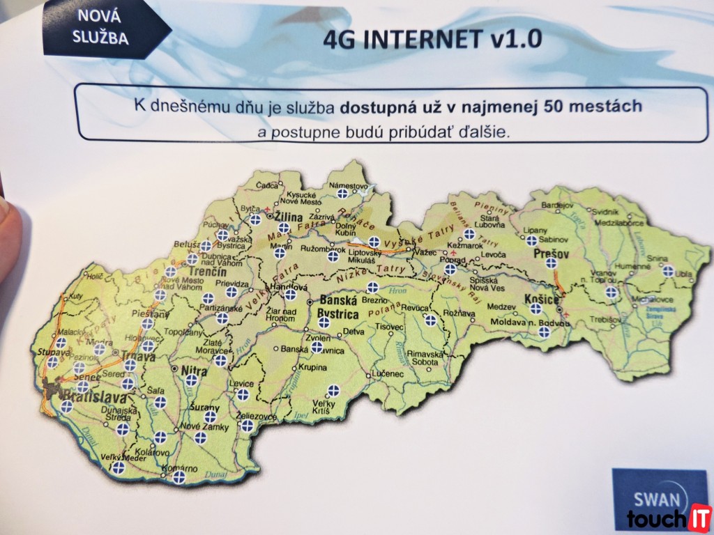 SWAN na tlačovej konferencii deklaroval pokrytie v 50 mestách (z toho 10 je úplne pokrytých). V našich silách bohužiaľ nie je, aby sme precestovali celé Slovensko a spravili komplexnú mapu pokrytia. To je úloha operátora, aby takúto informáciu poskytol.