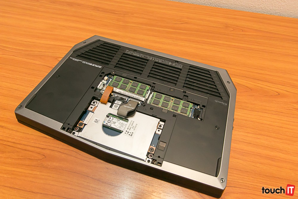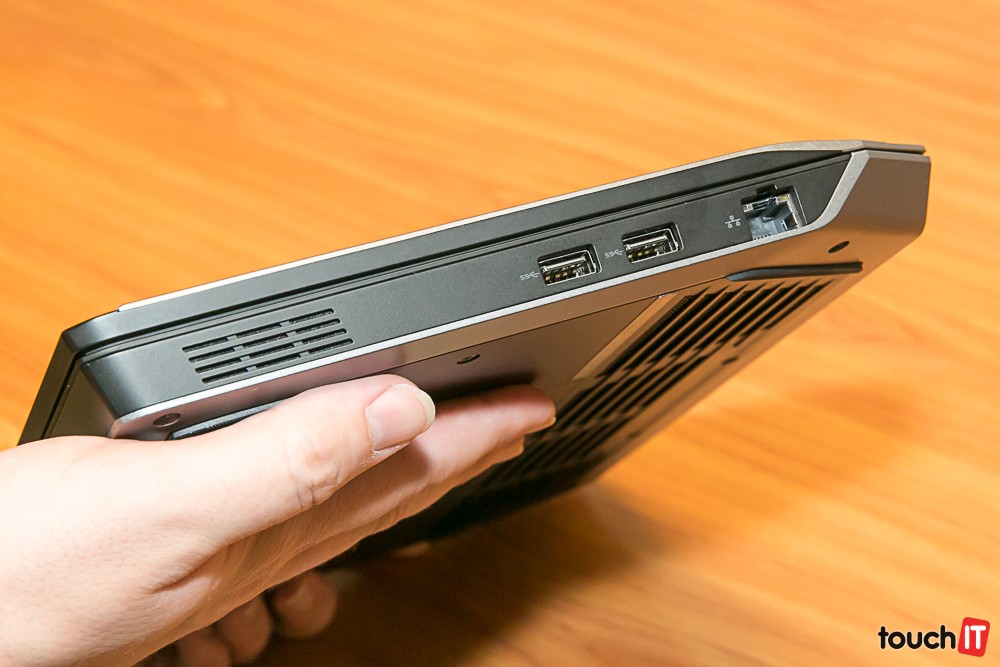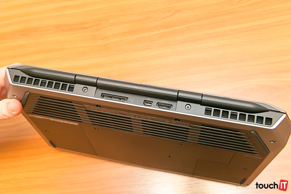 Z hľadiska portovej výbavy spomeňme trojicu USB 3.0 portov, gigabitový Ethernet, Mini-Display Port a HDMI výstup. Čítačku SD kariet notebook nemá, čo je v dnešnej dobe škoda. Na notebooku si všimnete aj jeden široký konektor, ktorý slúži na prepojenie notebooku s desktopovou grafickou kartou. Reproduktory chválime za to, že dokážu výborne navodiť pocit priestorového zvuku. Na druhej strane, chýbajú im „grády“ a potrebné basy. Sem-tam znejú nepresvedčivo, čo si všimnete priamo úmerne s rastúcou hlasitosťou.