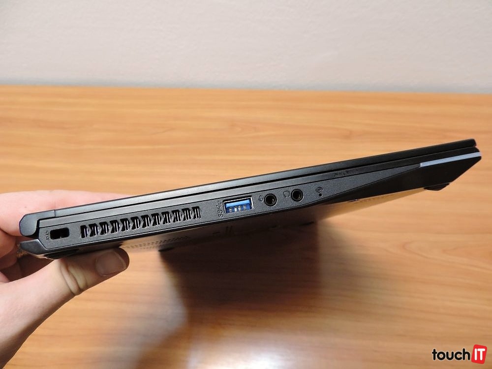 MSI GS30 2M. Zariadenie má matný 13,3-palcový Full HD displej, hrúbku necelé 2 cm a váhu iba 1,2 kg. Nie je to ultrabook, avšak na pomery herného notebooku sa zariadenie prenáša pohodlne a bez problémov. Výbavou prekvapí, pretože kombinuje výkonný procesor Intel Core i7 (