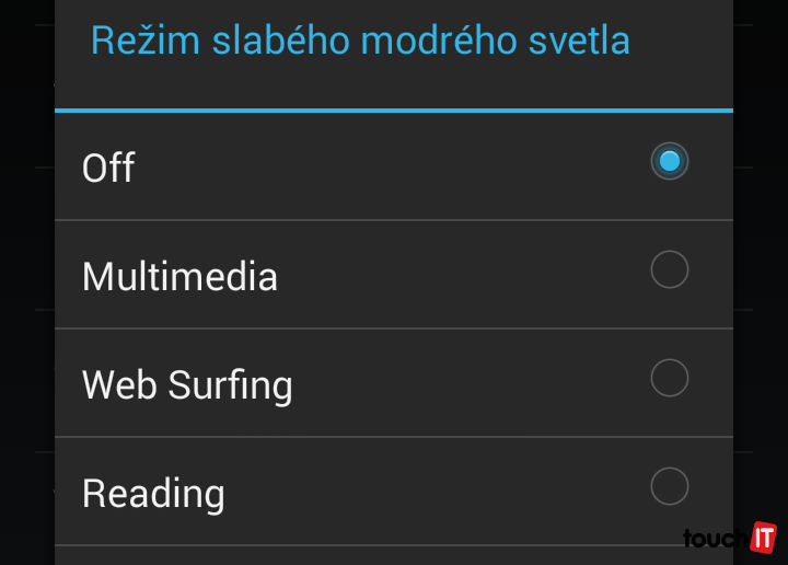 Je jasné, že BenQ musí s príchodom svojich telefónov zaujať. A aj keď ide o cenovo dostupnejší model, nesmie vynechať unikátne rozšírenie. Jedným z nich je aj korekcia farieb displeja vzhľadom na osvetlenie. Je to výborná funkcia najmä v kanceláriách, kde sa používa studené biele svetlo. Z hľadiska ergonómie je označované ako „energizing“, no pri pohľade na displej môže potom unavovať oči pri pohľade na biele plochy. Najčastejšie pri čítaní kníh alebo prezeraní webu. Dostupné sú tri stupne korekcie a to aj priamo z menu záhlavia hlavnej obrazovky.