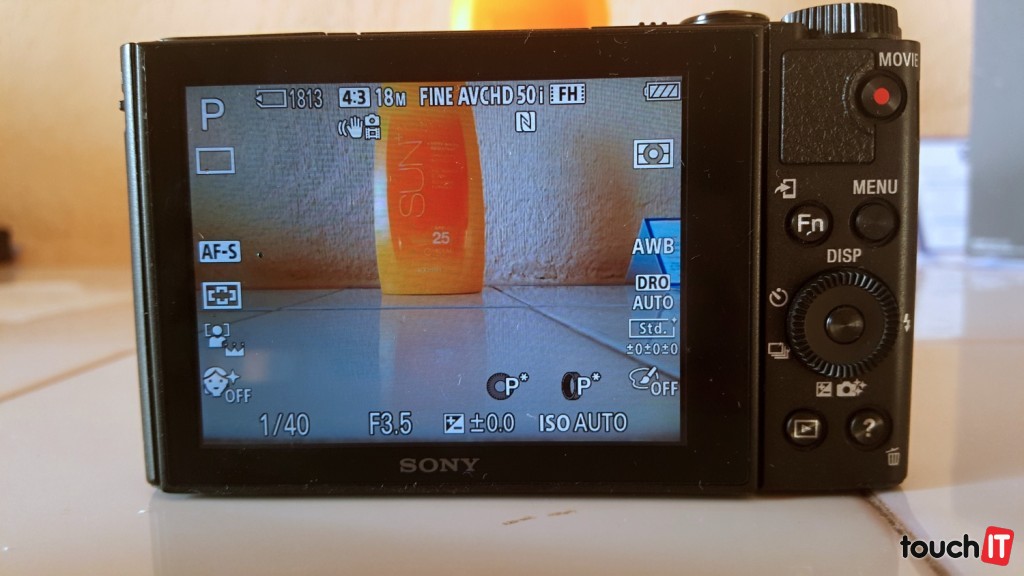 Ak na displej priamo nesvieti slnko, potom na ňom aj uvidíte informácie a je veľkou výhodou, že je otočiteľný o 180°. Na fotenie Selfie fotografií je teda HX90 ideálny. V tomto prípade vám za slnečných dní síce spomínaný hľadáčik nepomôže, ale na displeji predsa len uvidíte nejaké časti postáv.