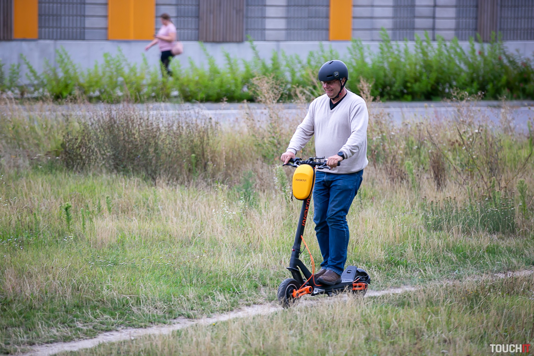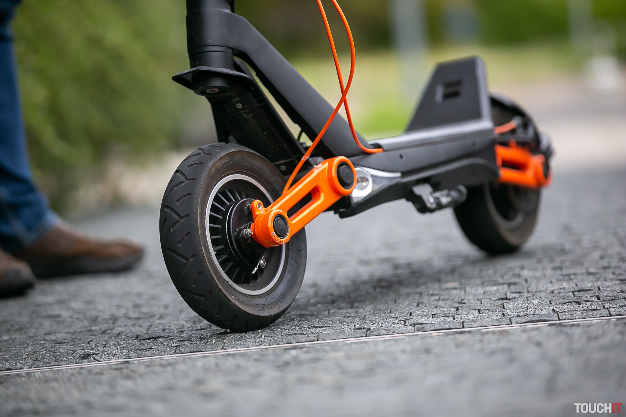 Nevadí jej dážď, dá sa s ňou bezpečne jazdiť v noci, je efektnej osvetlená. Podvozok je výškovo nastaviteľný a na brzdy sa môžete spoľahnúť. Podvozok je navyše odpružený, práve preto prejdete aj po hrboľatom teréne. Obe kolesá sú 10-palcové a plnené vzduchom, preto pomáhajú k celkovému odpruženiu. Dojazd 60 km samozrejme nedosiahnete, ak pôjdete stál na plný plyn. Vtedy počítajte tak s 35 km, veľa závisí od terénu a hmotnosti jazdca. Naopak, pri extra úspornej jazde sa môžete dostať aj výraznejšie nad 60 km. Doba nabíjania celkom vybitej batérie do 100 % je takmer 7 hodín.