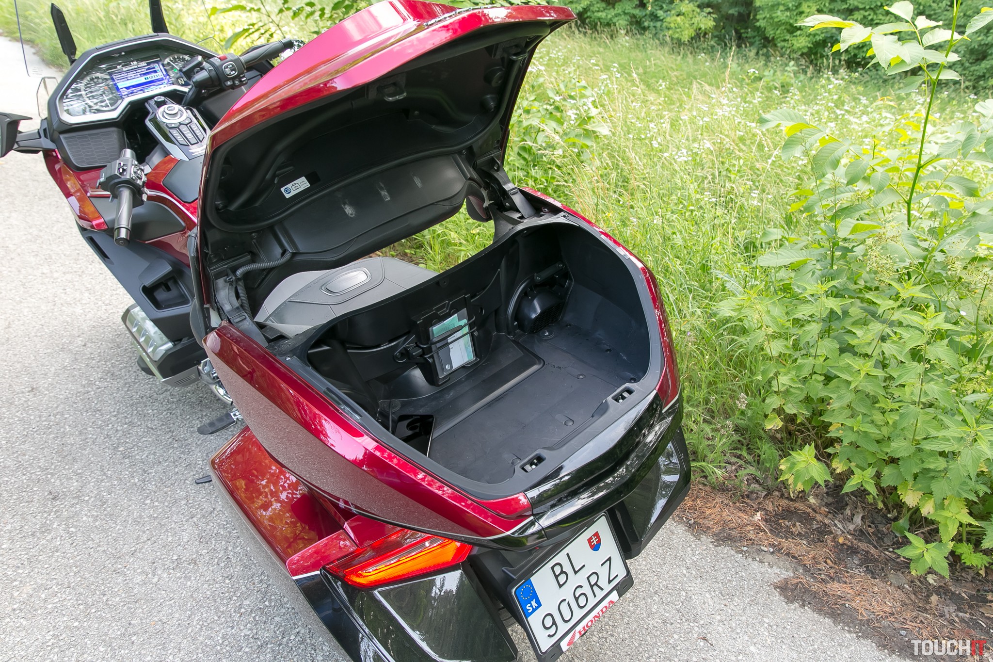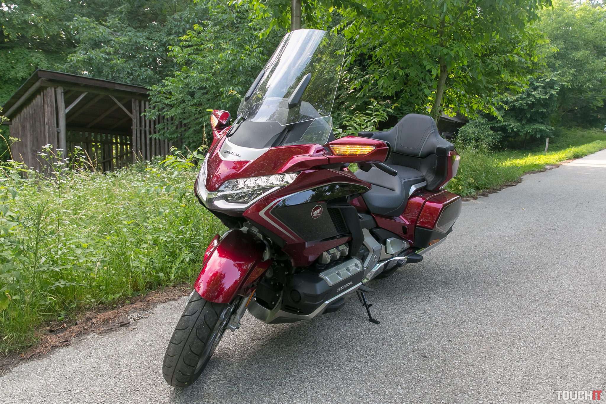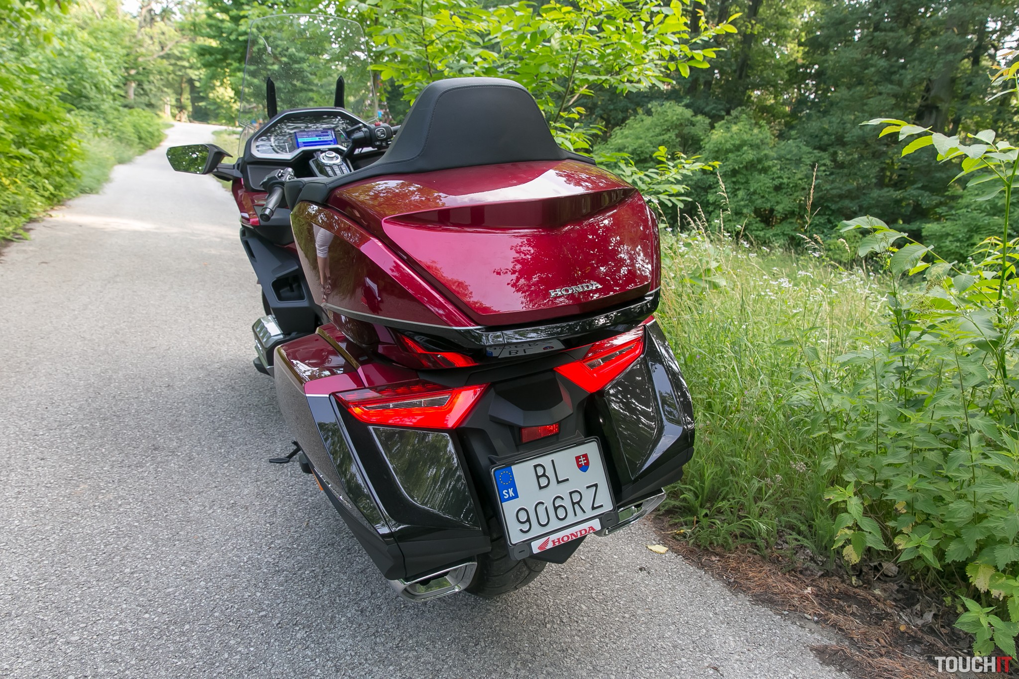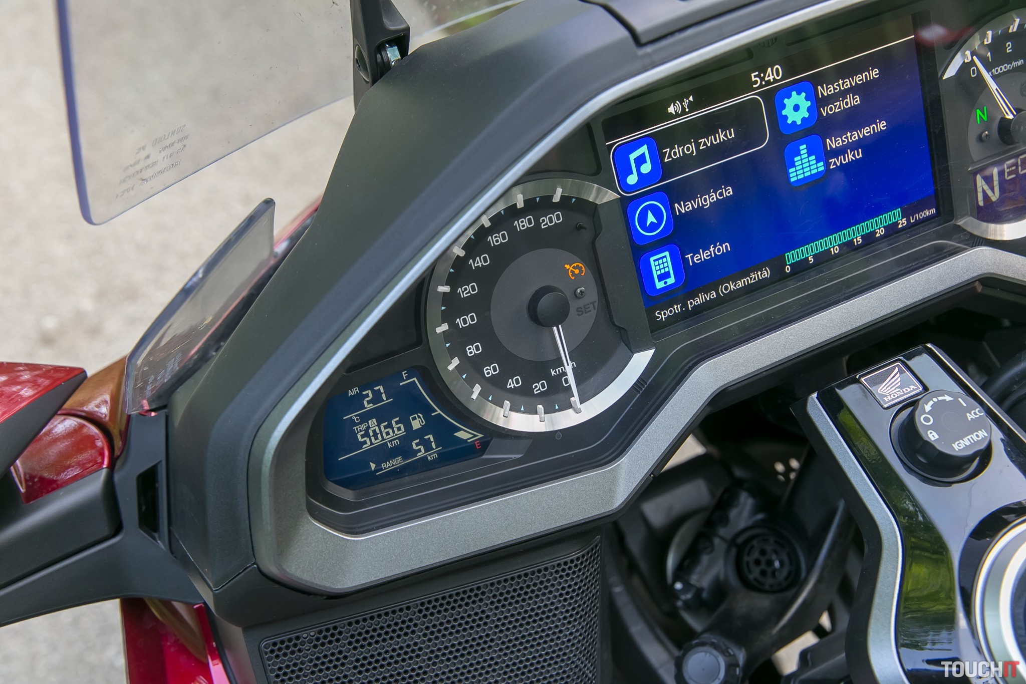 Jazda na tejto motorke je naozaj zážitok, ale vyžaduje aj isté skúsenosti. Motorka Honda Goldwing má viac ako 360 kg a manévrovať s ňou vyžaduje trochu cviku a tiež rešpektu. Zároveň vy na tejto motorke budíte rešpekt a prakticky máte právo prednostnej jazdy. To sa na uliciach Bratislavy celkom hodí. V režime šport sa mení na agresívnu šelmu a po pridaní plynu sa musíte dobre držať riadiel. Motor s objemom 1800 cm3 je riadne cítiť. Režim Tour je štandardný a s ním je jazda v podstate pokojná. Výborná je možnosť nastavenia polohy predného ochranného štítu, ktorá sa ovláda pomocou špeciálnej páčky. Je to kompromis medzi tým, ako ste na motorke sklonený a ako pohodlne sa a motorke vozíte. Samozrejme, má to aj dopad na spotrebu motorky. Centrom ovládania je prehľadný farebný displej s ponukou, nad nádržou je potom systém mechanických tlačidiel, ktorý plnohodnotne funguje vtedy, keď nie je motorka v pohybe. Ak je motorka v pohybe, funkciu väčšiny tlačidiel preberá systém tlačidiel pri ľavej ruke. Na displeji vidíte aj údaje z palubného počítača. Na pravej strane potom vidíte údaj o zaradenom režime jazdy a tiež je tu údaj o rozložení hmotnosti (samotný jazdec bez batožiny, jazdec s batožinou, dva cestujúci bez batožiny a s batožinou). Takto sa pohybujete v menu, dá sa aj ovplyvniť zaradený rýchlostný stupeň, ak je zaradená automatická prevodovky. Výborný je systém na polohovanie motorky smerom dopredu a dozadu. Pri motorke, ktorá má takúto hmotnosť je to príjemný spôsob ako napr. motorkou cúvať do kopca. Pri odstavení Honda Goldwing je možné použiť aj ručnú brzdu. Zadné operadlo pre spolujazdca je pohodlné, nachádzajú sa tu aj výkonné reproduktory. Batožina sa dá uložiť do postranných priestorov alebo do hlavného zadného kufra. Tu nájdete aj port na pripojenie smartfónu a možnosť jeho nabíjania. Smartfón sa dá s Honda Goldwing bezdrôtovo prepojiť cez Bluetooth. Táto časť kufra je aj chladená. Spotreba benzínu bola pri našom teste 5,4 litra/100 km a s motorkou sme realizovali testovaciu trasu vyše 500 km. Zažili sme rôzne typy počasí, konštatujeme, že motorka je stabilná aj počas dažďa. Režim Sport zaraďte až potom, keď budete mať túto motorku už dobre v rukách.Podobné články