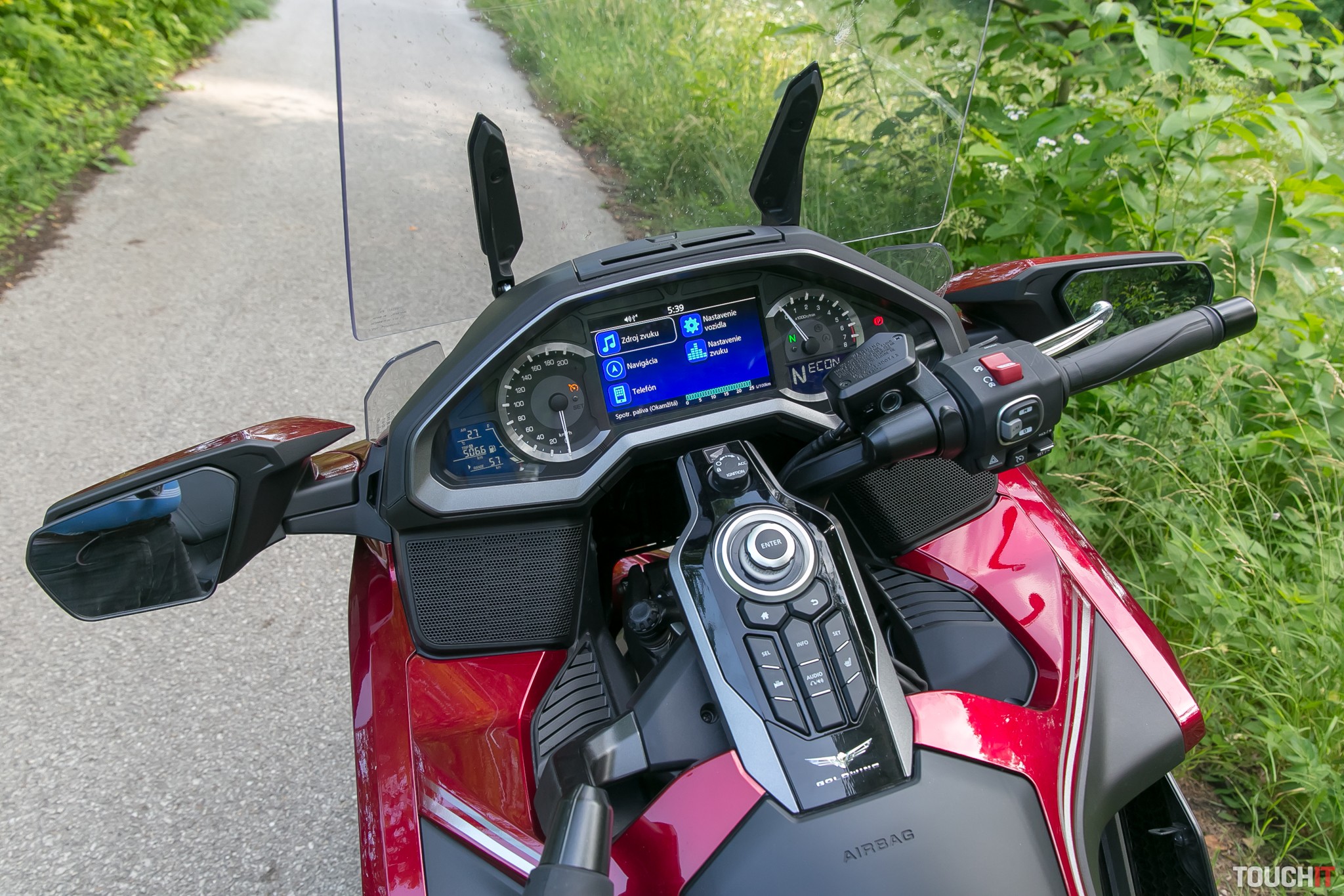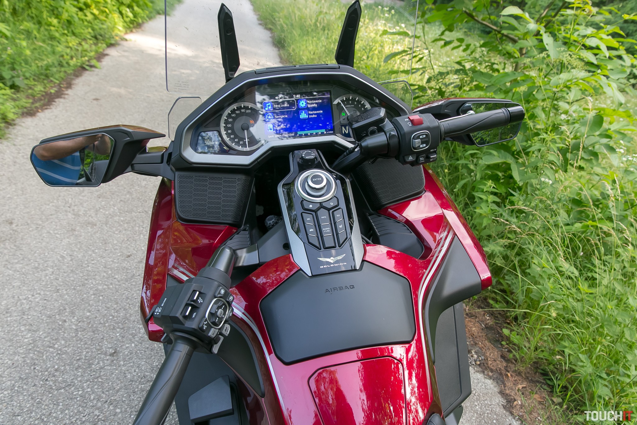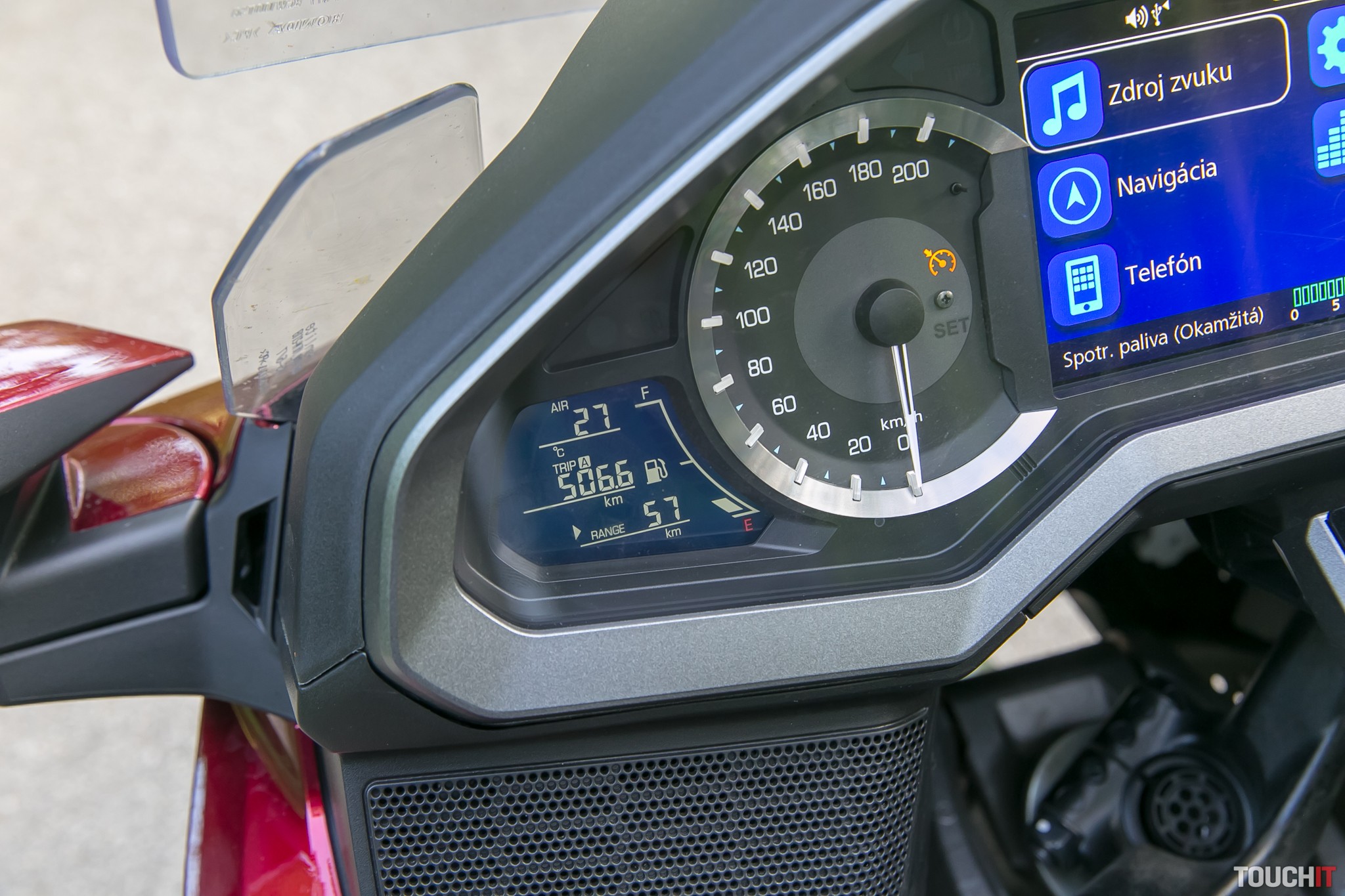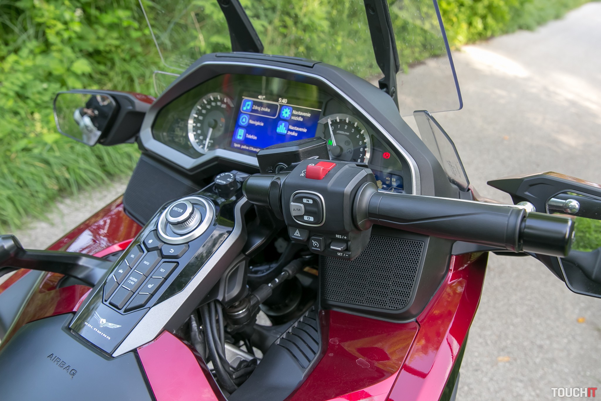 Jazda na tejto motorke je naozaj zážitok, ale vyžaduje aj isté skúsenosti. Motorka Honda Goldwing má viac ako 360 kg a manévrovať s ňou vyžaduje trochu cviku a tiež rešpektu. Zároveň vy na tejto motorke budíte rešpekt a prakticky máte právo prednostnej jazdy. To sa na uliciach Bratislavy celkom hodí. V režime šport sa mení na agresívnu šelmu a po pridaní plynu sa musíte dobre držať riadiel. Motor s objemom 1800 cm3 je riadne cítiť. Režim Tour je štandardný a s ním je jazda v podstate pokojná. Výborná je možnosť nastavenia polohy predného ochranného štítu, ktorá sa ovláda pomocou špeciálnej páčky. Je to kompromis medzi tým, ako ste na motorke sklonený a ako pohodlne sa a motorke vozíte. Samozrejme, má to aj dopad na spotrebu motorky. Centrom ovládania je prehľadný farebný displej s ponukou, nad nádržou je potom systém mechanických tlačidiel, ktorý plnohodnotne funguje vtedy, keď nie je motorka v pohybe. Ak je motorka v pohybe, funkciu väčšiny tlačidiel preberá systém tlačidiel pri ľavej ruke. Na displeji vidíte aj údaje z palubného počítača. Na pravej strane potom vidíte údaj o zaradenom režime jazdy a tiež je tu údaj o rozložení hmotnosti (samotný jazdec bez batožiny, jazdec s batožinou, dva cestujúci bez batožiny a s batožinou). Takto sa pohybujete v menu, dá sa aj ovplyvniť zaradený rýchlostný stupeň, ak je zaradená automatická prevodovky. Výborný je systém na polohovanie motorky smerom dopredu a dozadu. Pri motorke, ktorá má takúto hmotnosť je to príjemný spôsob ako napr. motorkou cúvať do kopca. Pri odstavení Honda Goldwing je možné použiť aj ručnú brzdu. Zadné operadlo pre spolujazdca je pohodlné, nachádzajú sa tu aj výkonné reproduktory. Batožina sa dá uložiť do postranných priestorov alebo do hlavného zadného kufra. Tu nájdete aj port na pripojenie smartfónu a možnosť jeho nabíjania. Smartfón sa dá s Honda Goldwing bezdrôtovo prepojiť cez Bluetooth. Táto časť kufra je aj chladená. Spotreba benzínu bola pri našom teste 5,4 litra/100 km a s motorkou sme realizovali testovaciu trasu vyše 500 km. Zažili sme rôzne typy počasí, konštatujeme, že motorka je stabilná aj počas dažďa. Režim Sport zaraďte až potom, keď budete mať túto motorku už dobre v rukách.Podobné články