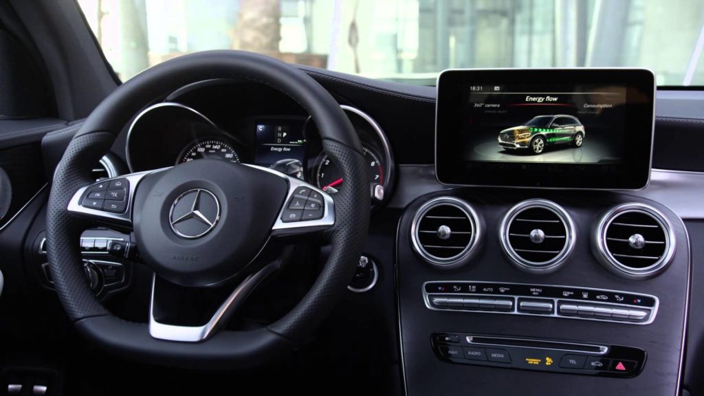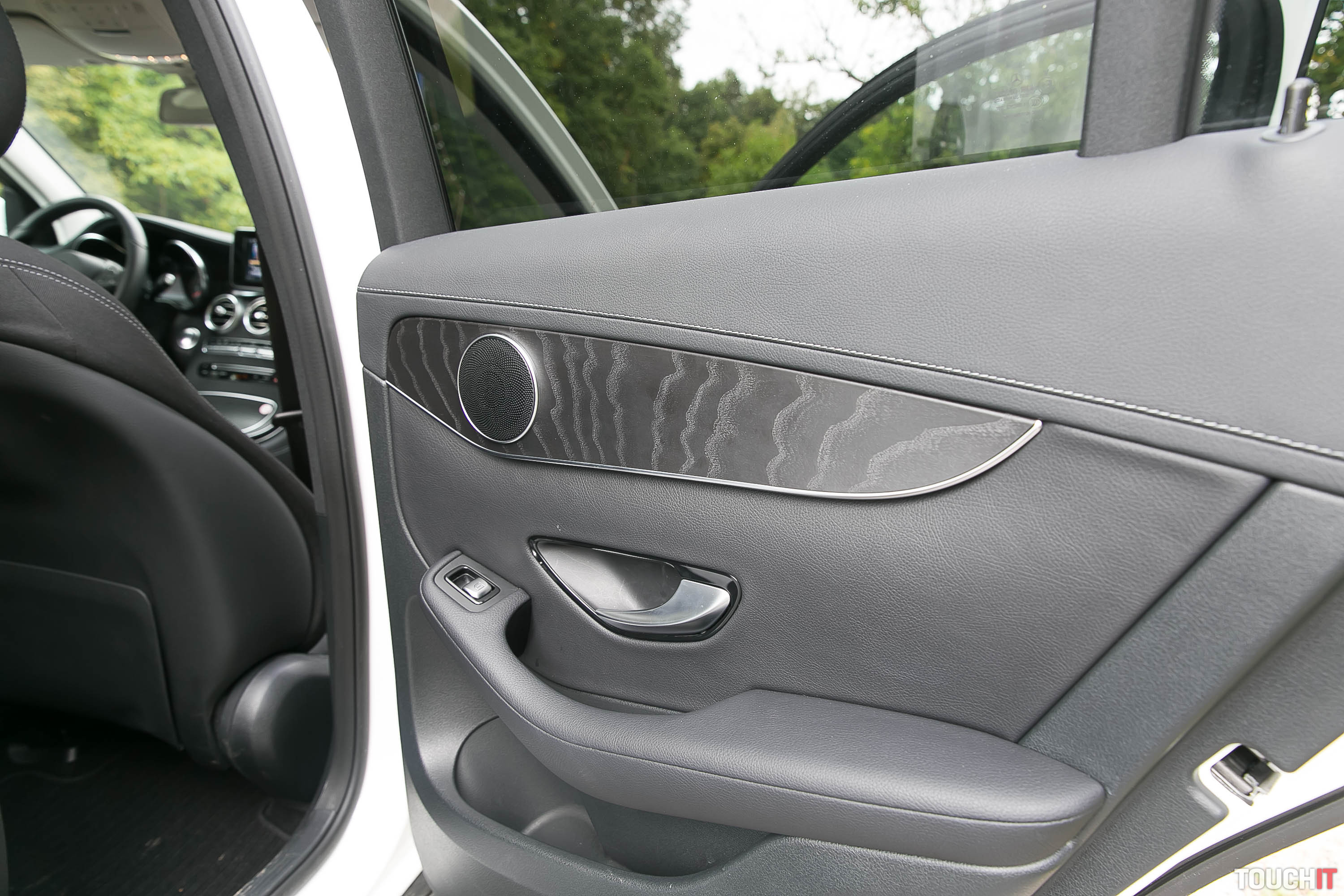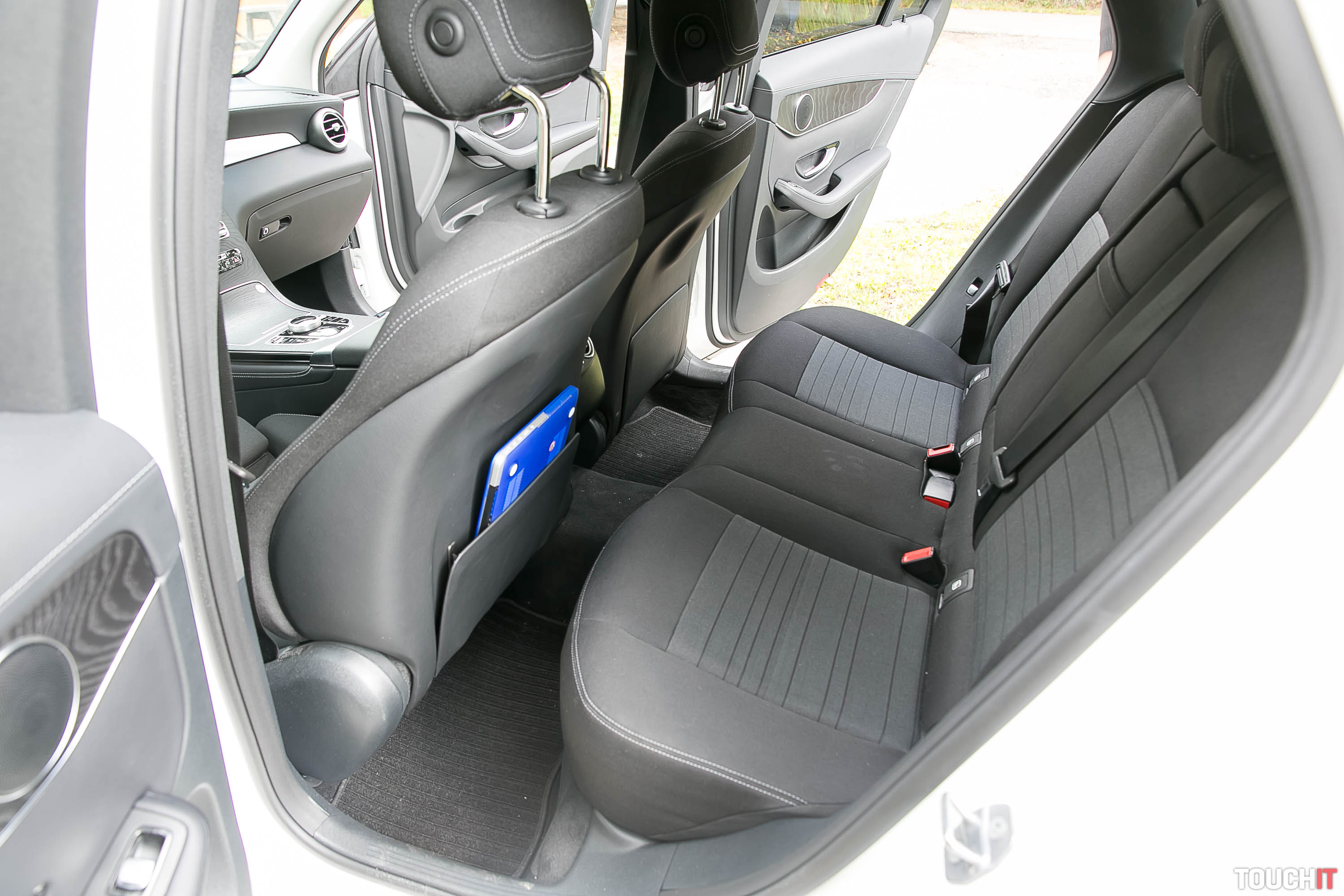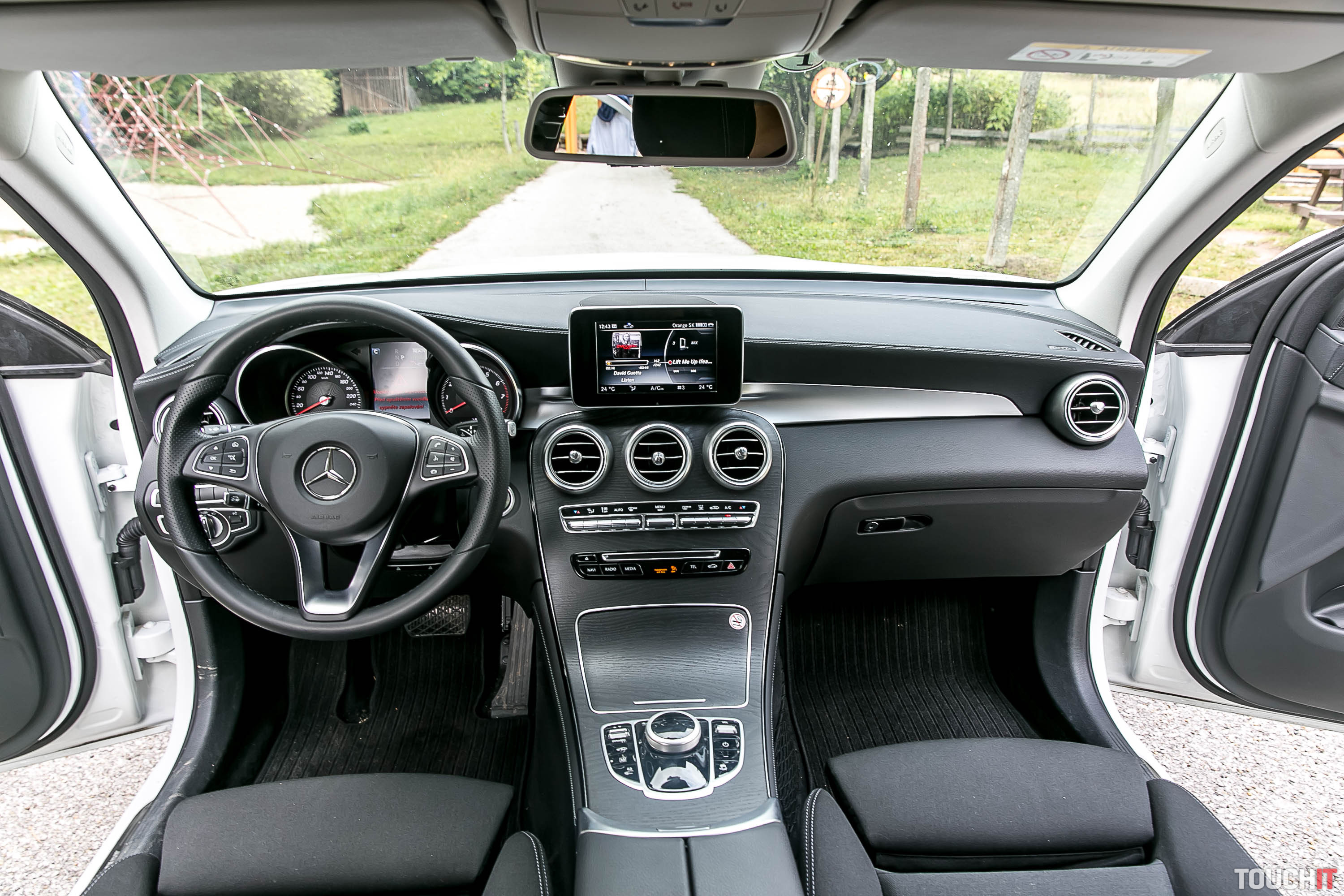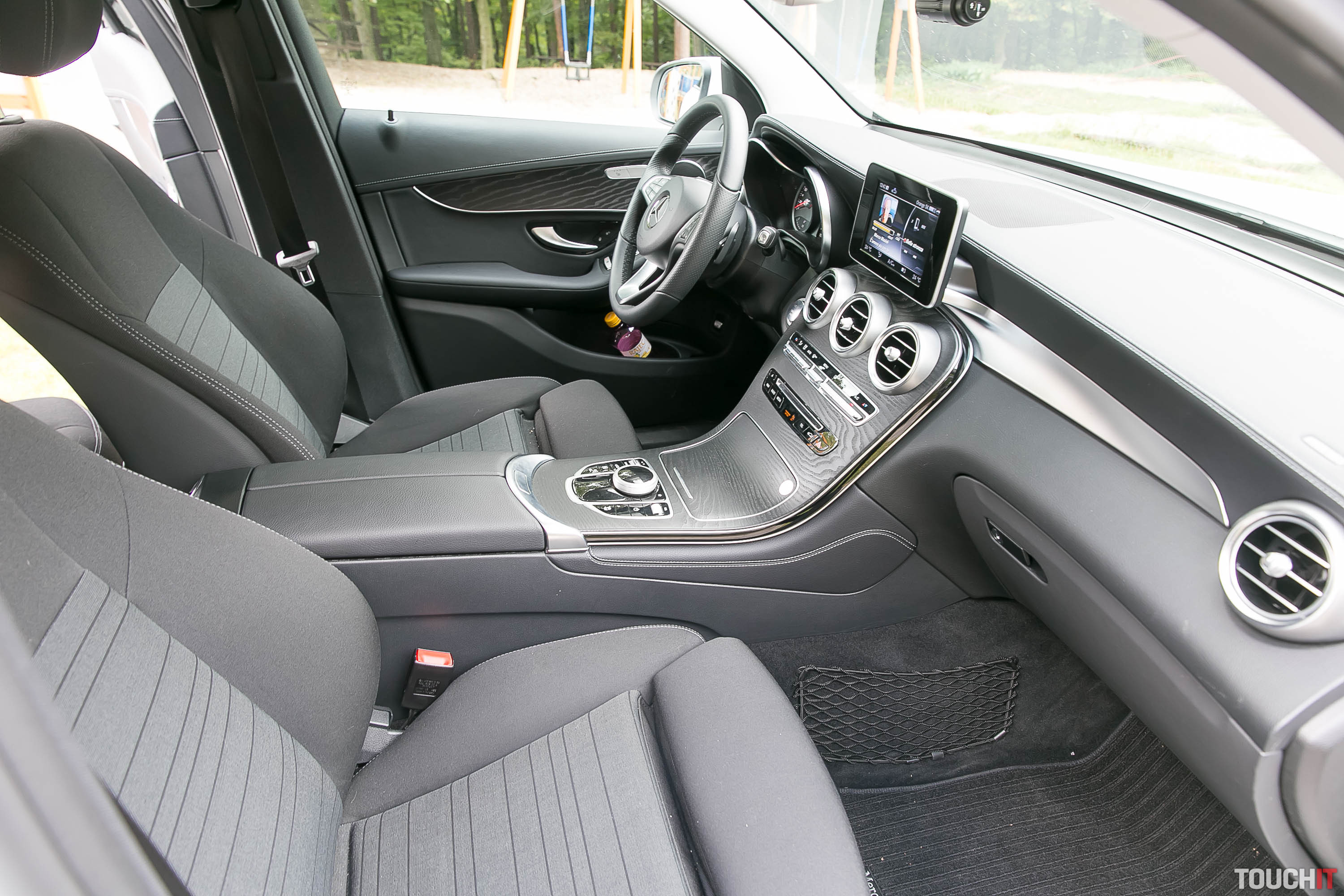 Interiér má elegantné obloženie, ktoré je imitáciou čierneho jaseňa. Palubná doska je obšívaná kožou, čo nám celkom neladilo s látkovými sedadlami. Tie sú elektricky ovládané a celkom pohodlné. Ani po dlhšej ceste sme nemali výrazný pocit únavy. Máme radi autá, ktoré majú vysoký a masívny stredový tunel s lakťovou opierkou, čo GLCéčku nechýba, pričom sú poruke aj všetky ovládacie prvky multimédií a nastavení vozidla.