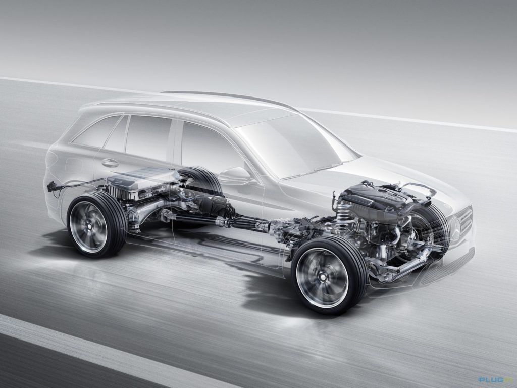 Výkon elektromotora (viď vyššie) je aj napriek väčšej karosérii dostatočný, pričom čisto na elektrinu dokáže ísť GLCéčko až do rýchlosti 135 km/h. Synchrónny elektromotor dopuje 8,7 kWh batéria uložená nad zadnou nápravou. Batéria má síce dostatočnú kapacitu, ale váhu a veľkosť vozidla neoklame. Na čisto elektrický pohon sme prešli v priemere okolo 15 km, pričom max. sme dosiahli vzdialenosť 20 km.