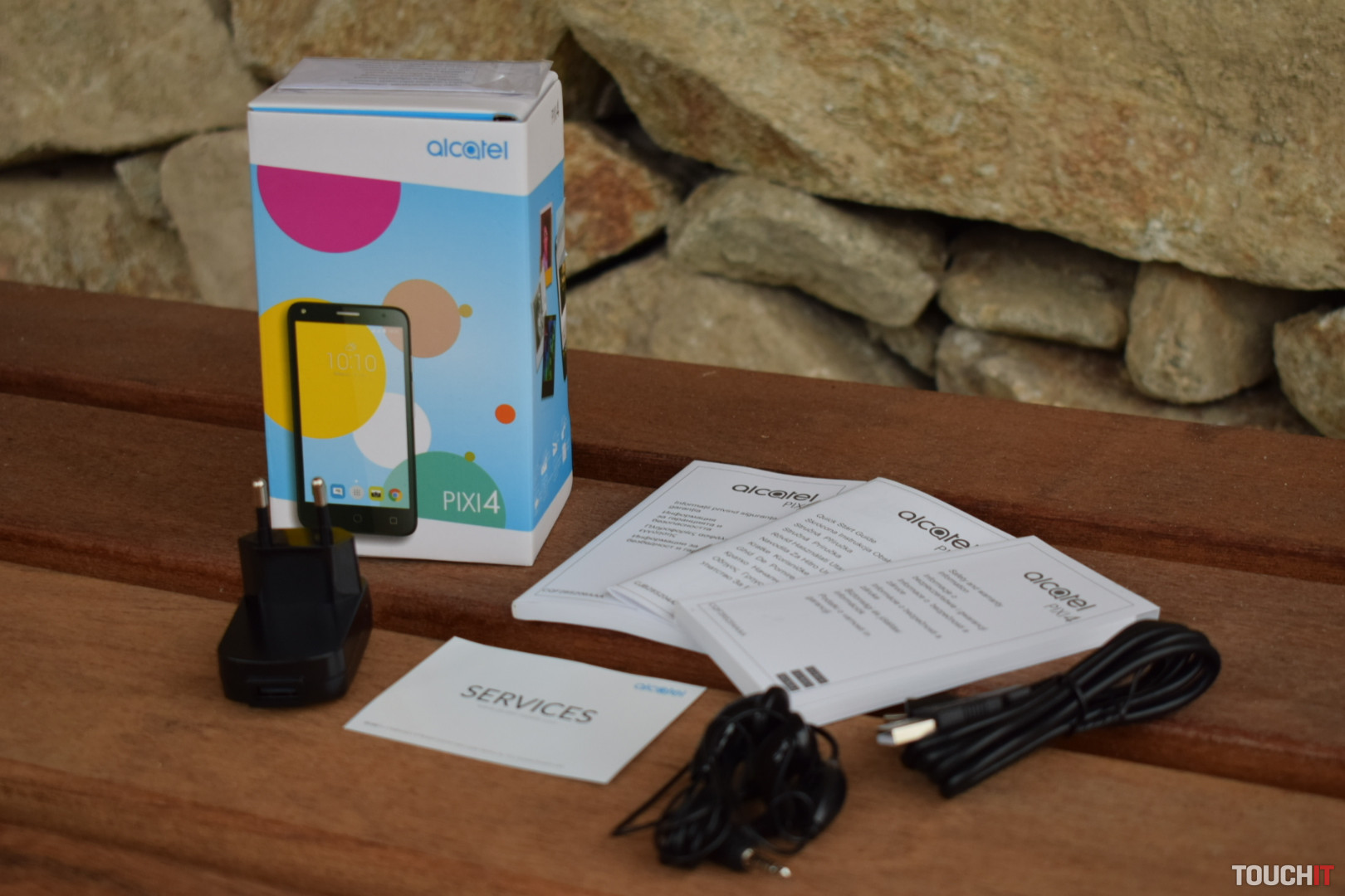 PIXI 4 k nám dorazil v malej farebnej krabičke, na ktorej je vyobrazený smartfón s logom Alcatel a označením modelu. Na pravej bočnej strane sa dozvedáme hlavné výhody zariadenia. V balení spolu so smartfónom dostávame okrem príručiek aj sieťový adaptér s výstupom 550 mAh, USB kábel a slúchadlá.
