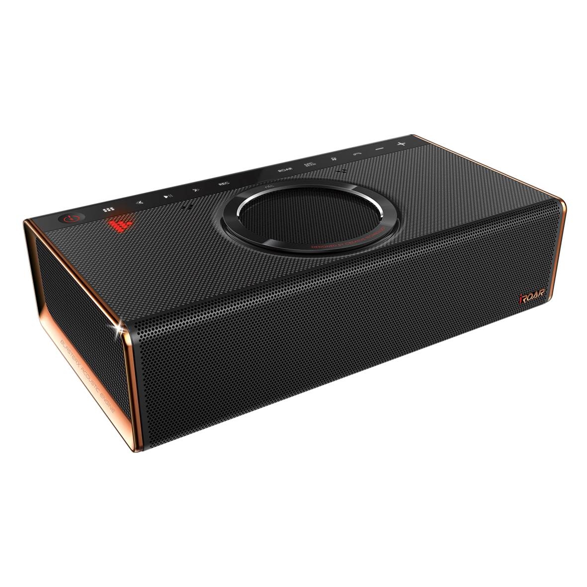 Okrem toho je na trhu aj model iRoar. Model Roar Pro je veľmi dobre vybavený reproduktor a patrí medzi výkonné multimediálne reproduktory. Svojím konceptom sa uplatní nielen doma, ale dobre poslúži aj v modernej kancelárii. Dokonca aj ako súčasť prednášok, ideálne v klasickej konferenčnej miestnosti. K reproduktoru sa dá pripojiť cez Bluetooth aj mikrofón s názvom iRoar Mic, no ten sa predáva samostatne a stojí 79,99 eura. My sme ho testovali spolu s reproduktorom. Tentoraz už je potrebné reproduktor používať iba naležato. V minulosti ste si ho pritom mohli postaviť na výšku dlhšou hranou vo forme základne. Naležato má totiž hore stredobasový 2,5“ menič, vpredu má dva výškové meniče s priemerom 1,5“ a na bokoch dva pasívne žiariče. To je celá zostava vo forme zvuku 2.1. Podporuje párovanie cez NFC, prepojenie cez Bluetooth a možnosť telefonovania a je vlastne na externom zdroji zvuku úplne nezávislá. Ani tu totiž nechýba slot na microSD kartu. Ak si reproduktor spojíte cez USB kábel, uvidíte jej obsah zároveň v počítači. To je vhodné na prenášanie dát, nielen hudobných, vo forme MP3, WMA a WAV, ale napríklad aj na záznam hovorov či hlasu, ktoré ste si cez reproduktor spravili. Nabíjanie funguje aj cez microUSB port. Ak cestujete, nepotrebujete so sebou nosiť klasický adaptér. Nabíjanie v tomto prípade funguje len pri vypnutom reproduktore.
