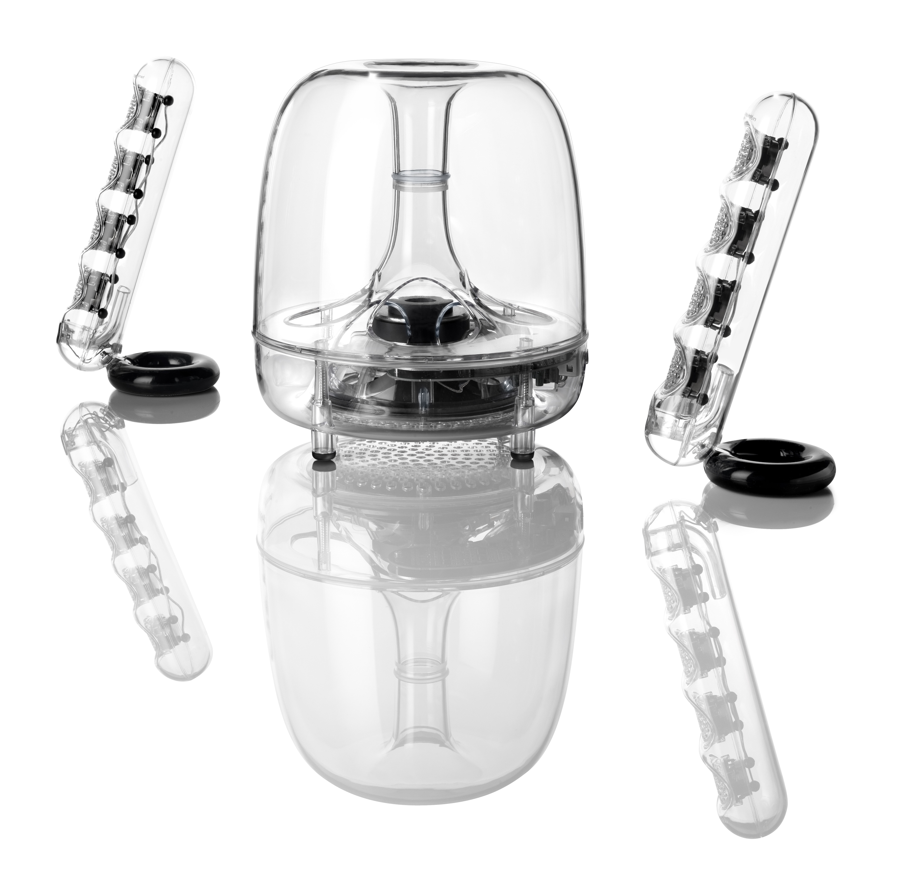 Skutočne bezdrôtové prepojenie je tu však cez Bluetooth. To oceňujeme a keď si v miestnosti nainštalujete reproduktory, potom sa k nim pripojíte cez rôzne zariadenia. Napevno tak môžu slúžiť ako domáce kino. Vtedy ich prepojíte káblom. Výhodou je, že pripojením k zdroju zvuku cez Bluetooth dostane toto pripojenie prednosť. Nemusíte tak meniť režim pripojenia ani odpájať audiokábel. Subwoofer, tak ako aj satelity, majú plastové telo. To je navyše priesvitné. Takže vidíte kompletne dovnútra. Uchytenie základnej dosky spojov, ako aj 150 mm meniča či výškových meničov v satelitoch je reprezentatívne. Pri návrhu bolo jasné, že sa bude dať vidieť dovnútra a ide o správnu „dizajnovku“.