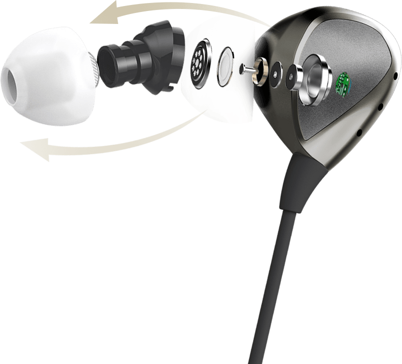 je technológia, ktorá sa udomácnila vo veľkých mušľových slúchadlách. Preto je to taký malý zázrak, keď ju objavíme aj v štupľových slúchadlách in-ear, teda do uší. Na pohľad ide o bežné slúchadlá s ovládacím prvkom na kábli.