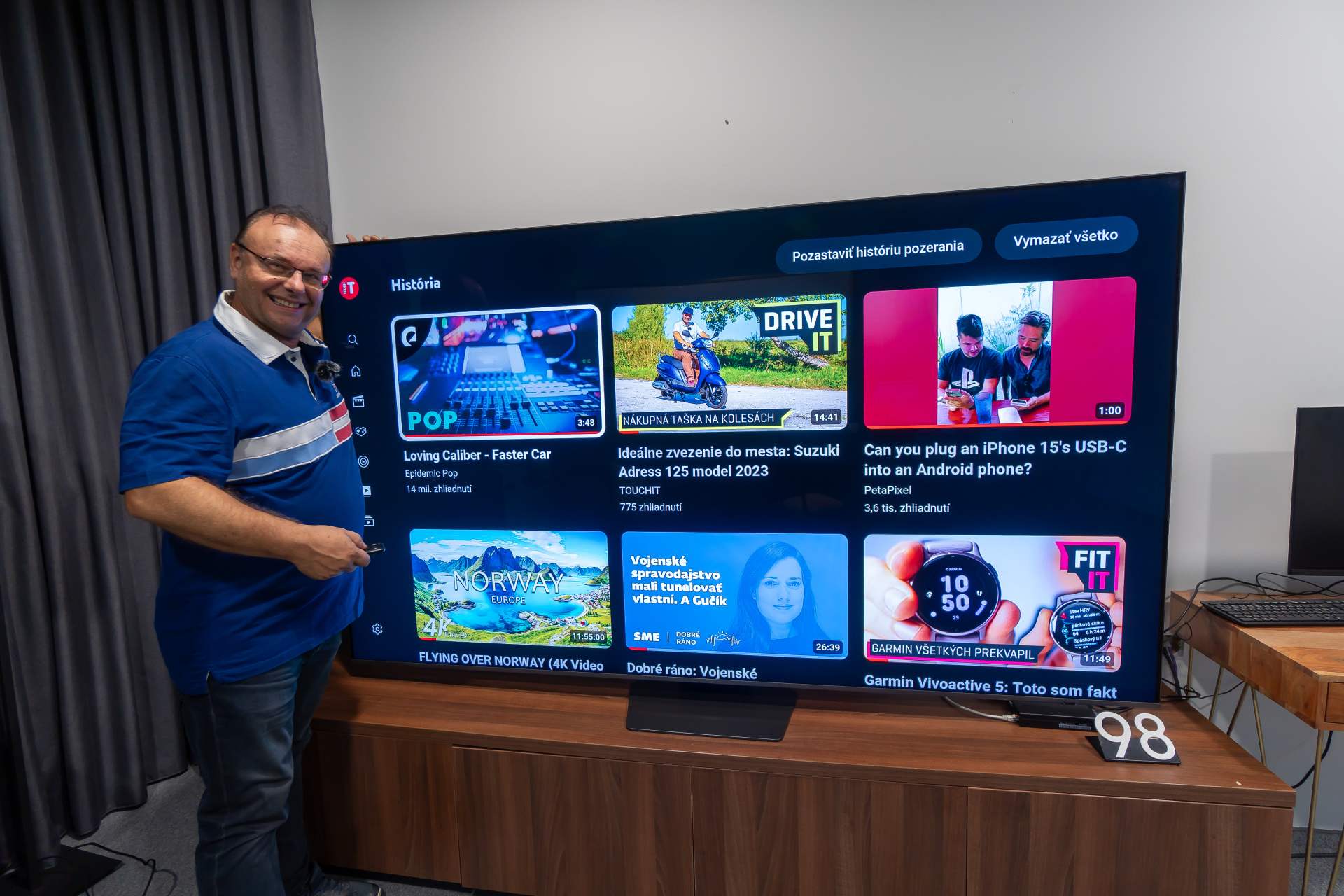 Nuž, aby sme otestovali taký veľký televízor, zašli sme do pražského zastúpenia spoločnosti Samsung. Naša redakcia sa totiž nachádza na 8. poschodí bizniscentra a výťah je príliš malý na rozmer uhlopriečky 98 palcov.