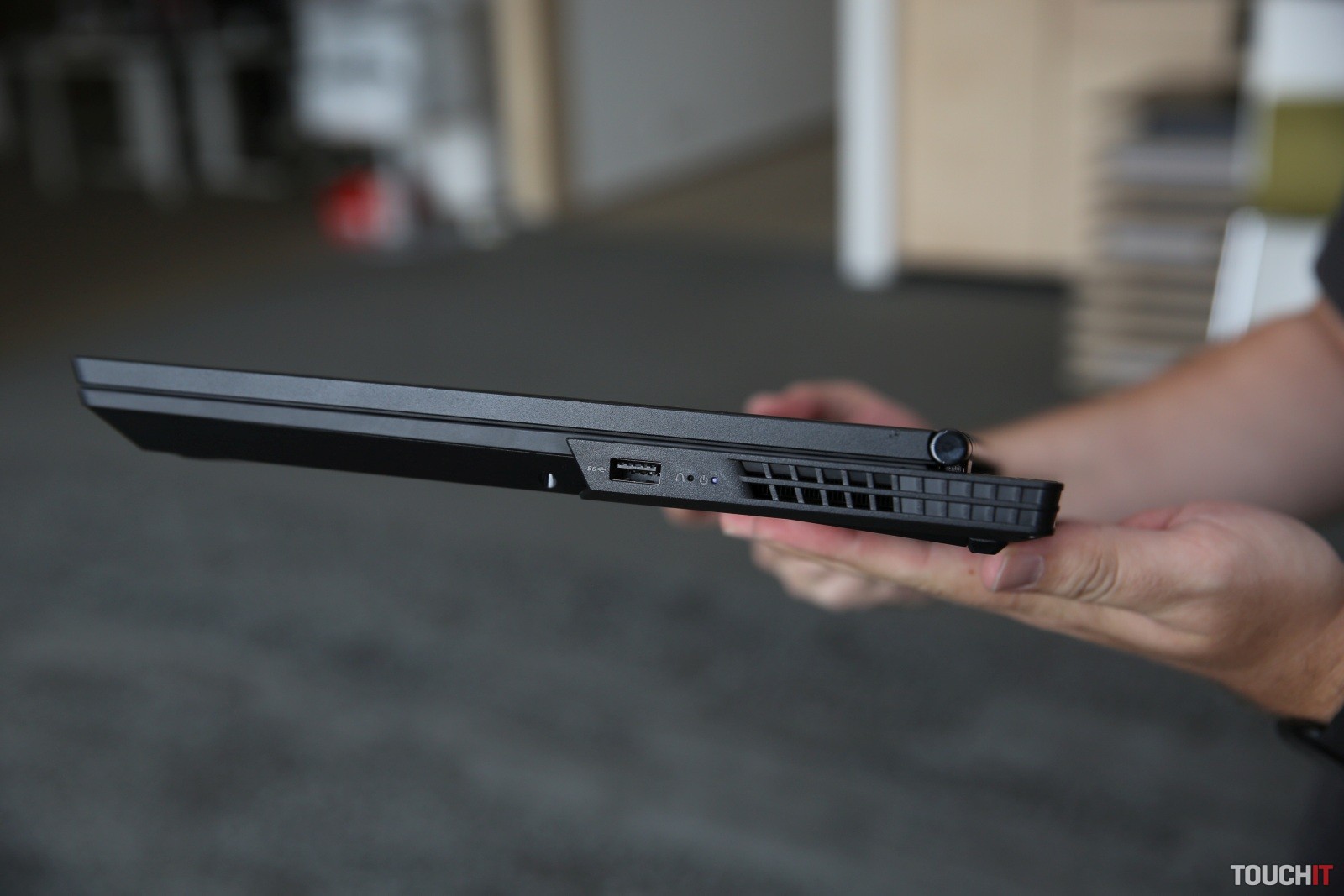 Konštrukciu a dizajn sme už zhodnotili. Šasi je odolné a dizajn elegantný. Za zmienku stojí aj trochu odlišné umiestnenie pántu, vďaka ktorému dizajn pôsobí viac jedinečne a zároveň ide aj o praktické rozhodnutie – väčšinu portov bolo možné presunúť na zadnú stranu a obrazovku je možné otvoriť až o 180°.
