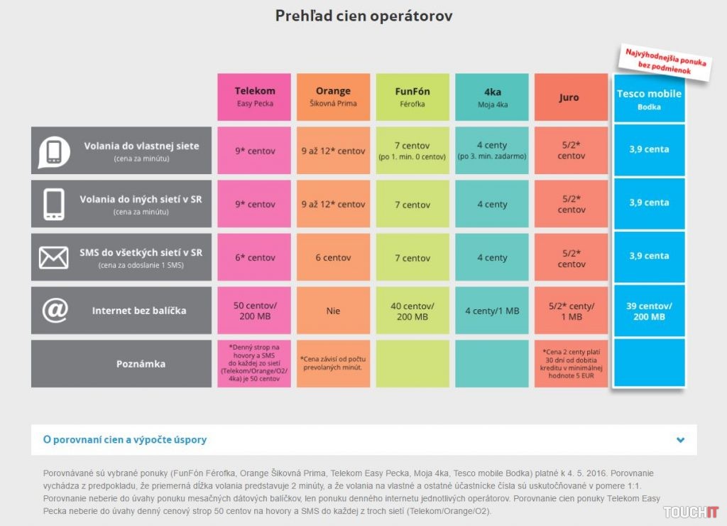 - Volania za 1 minútu – 0,039 Eura (sekundová tarifikácia od prvej sekundy volania)