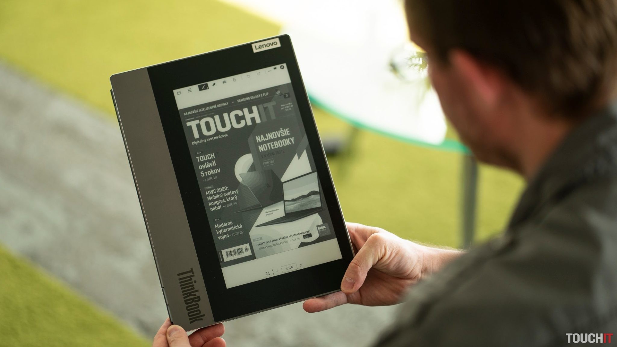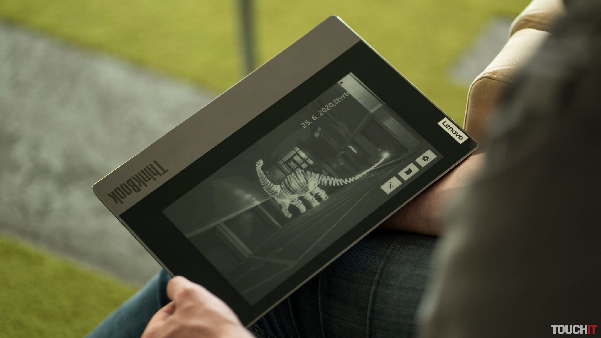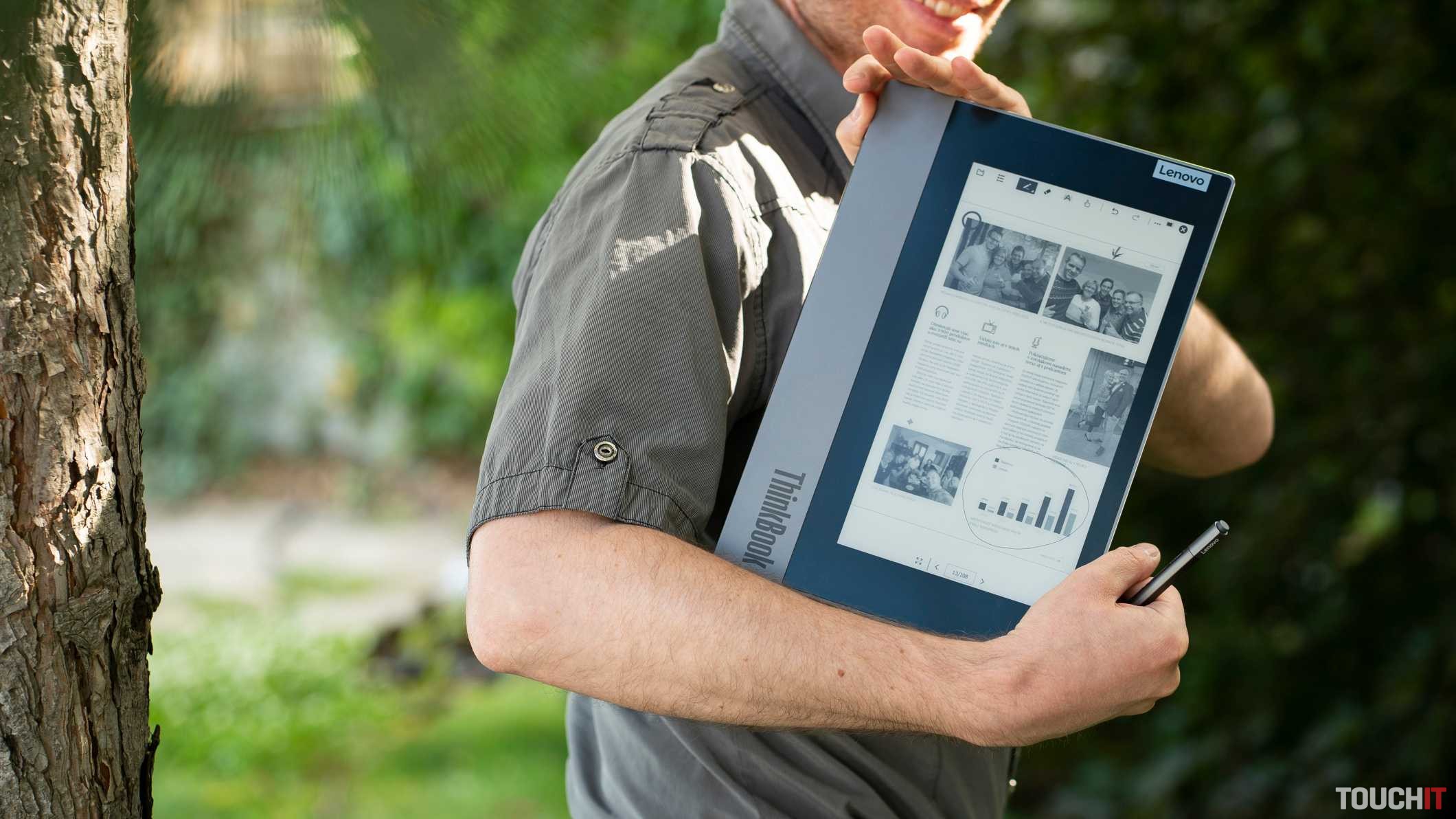 Iste, niekto uprednostní verziu, akú ponúka ASUS. Avšak, Lenovo ide na to úplne inou cestou. Pre mnohých „poznámkarov“ praktickejšou. Najmä, keď zoberieme do úvahy, že druhý displej sa dá použiť veľmi prirodzene. Ide o E-Ink displej, teda taký, ktorý môžete vidieť v čítačkách elektronických kníh.