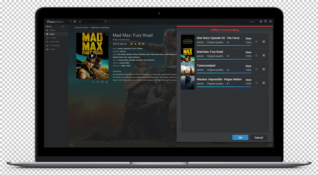 Pre ešte jednoduchšiu obsluhu odporúčame do vášho domáceho NAS nainštalovať službu Video Station, ktorá vám pomôže spravovať všetky filmy, televízne seriály a domáce videá, ktoré máte stiahnuté na vašom domácom NAS. Práve táto appka sa stará o správne streamovanie videa. Ak máte 4K televízor, pustí vám v domácej sieti film v maximálnom 4K rozlíšení. Ak však chcete pozerať seriál skôr na tablete v posteli a tablet máte iba v HD rozlíšení, Video Station automaticky prekóduje (v reálnom čase) video do HD rozlíšenia, aby sa prispôsobilo vášmu zariadeniu. A takto môžete dokonca sledovať svoju multimediálnu zbierku online, nech ste kdekoľvek na svete! Video Station vám k filmu či seriálu automaticky stiahne informácie, grafiku, ale aj titulky na základe vašich osobných preferencií.