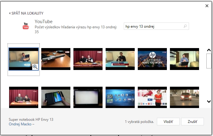 V prípade hľadania na základe kľúčových slov sa zobrazia náhľady výsledkov. Tých však môže byť príliš mnoho. Ak teda viete napríklad názov používateľa, ktorý video na YouTube vložil, použite ho pri zadávaní kľúčových slov. Spresníte výsledky hľadania. Potom stačí výsledok vybrať kliknutím na náhľad a potvrdiť tlačidlom Vložiť.