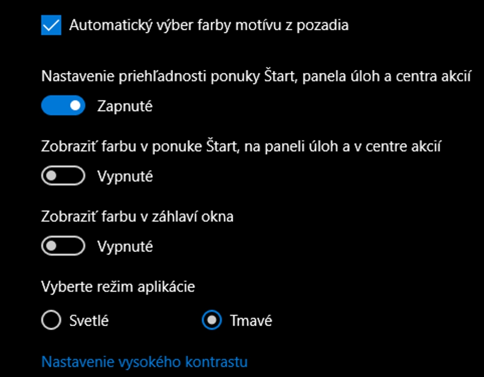 Zmena režimu je priamo v nastaveniach systému: Nastavenie – Prispôsobenie – Farby – Vyberte režim aplikácie.