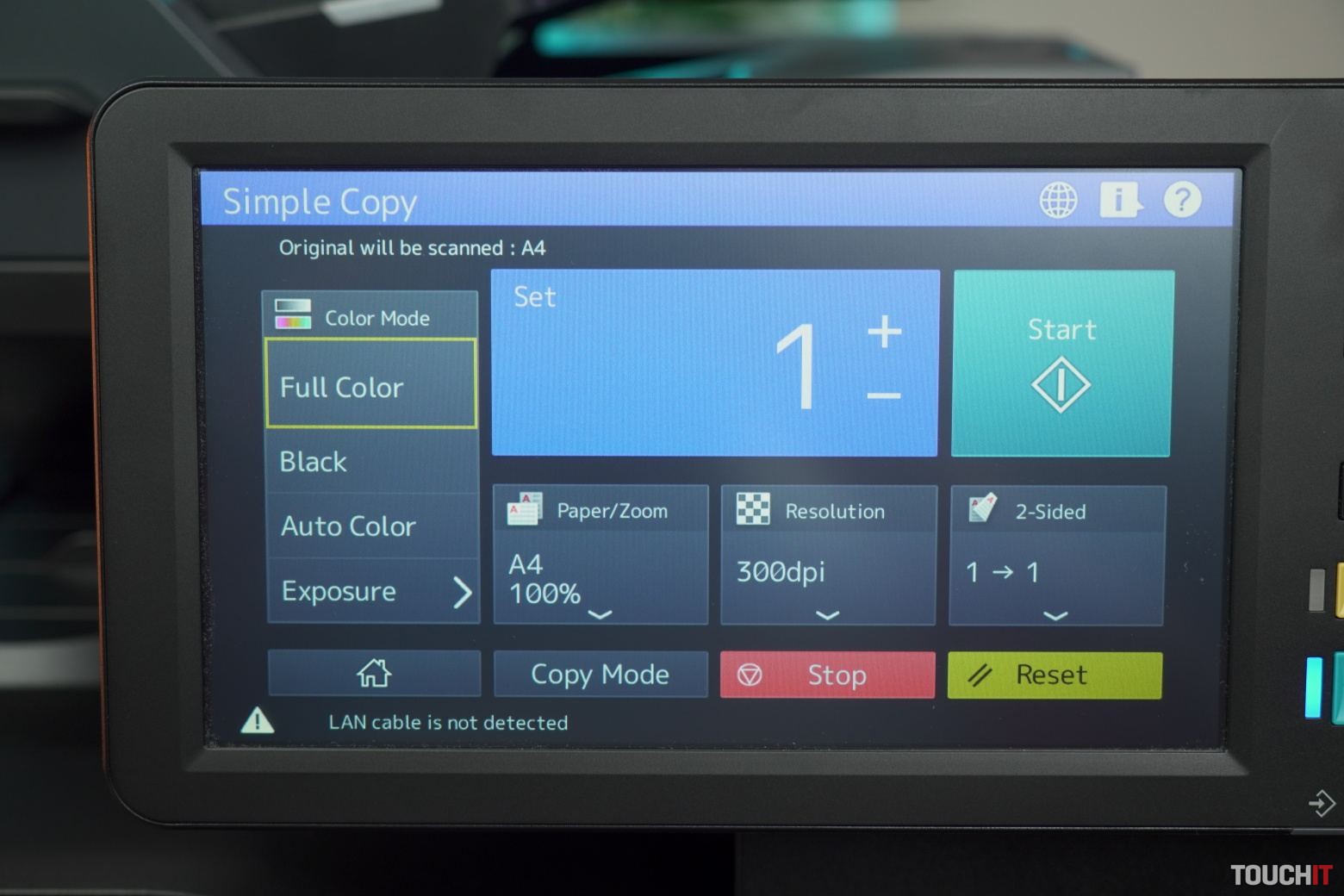 Do zariadenia sa každý používateľ môže autorizovať a vytlačiť si len svoje dokumenty a ako voliteľný doplnok je možnosť prihlasovania cez NFC firemné karty. Bezpochyby oceníte aj taký detail, ako je možnosť vyklopenia farebného displeja, čo uľahčuje ovládanie zariadenia nezávisle na tom, v akej výške ho máte umiestnené.