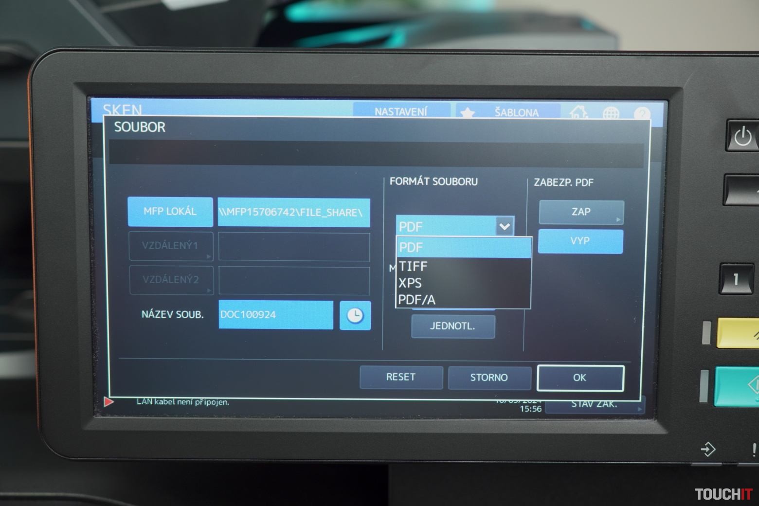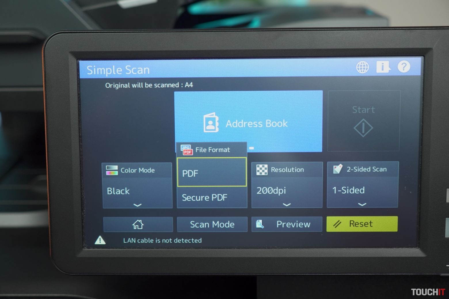 Rovnako tak si dokumenty poslať priamo na email alebo uložiť na pripojený flash disk. Priamo na zariadení sa dá nastaviť chránený formát PDF a nastaviť k nemu heslo a úroveň šifrovania. Perličkou je nastavenie doplnkového parametra, čo konkrétne heslo chráni. Bez zadania hesla sa dokument nebude dať napríklad vytlačiť alebo upraviť, či z neho kopírovať údaje.