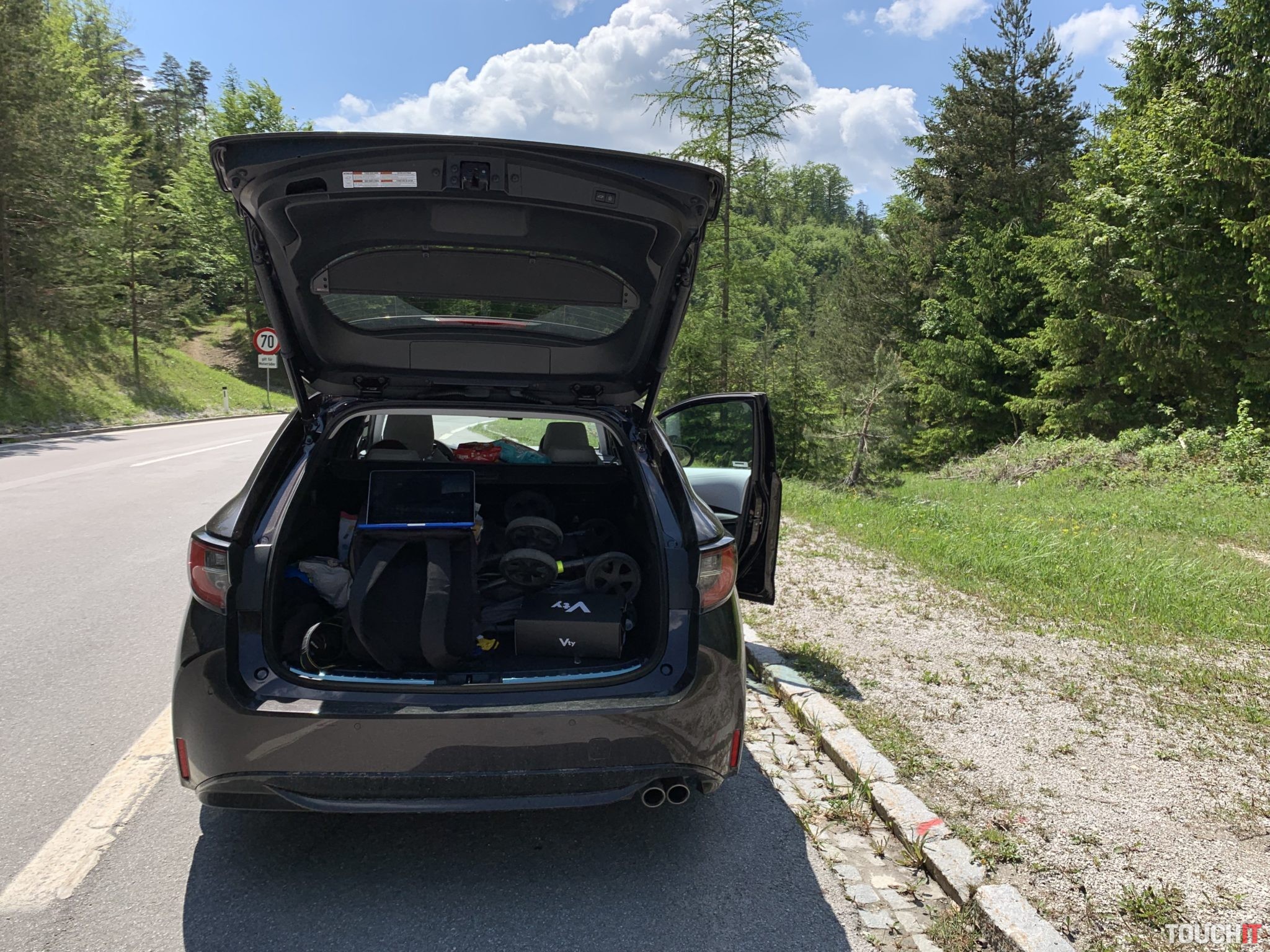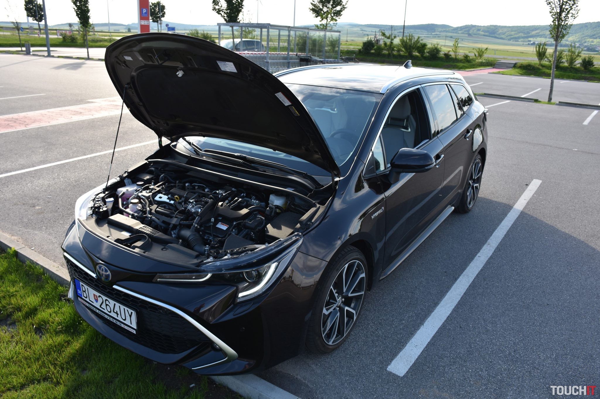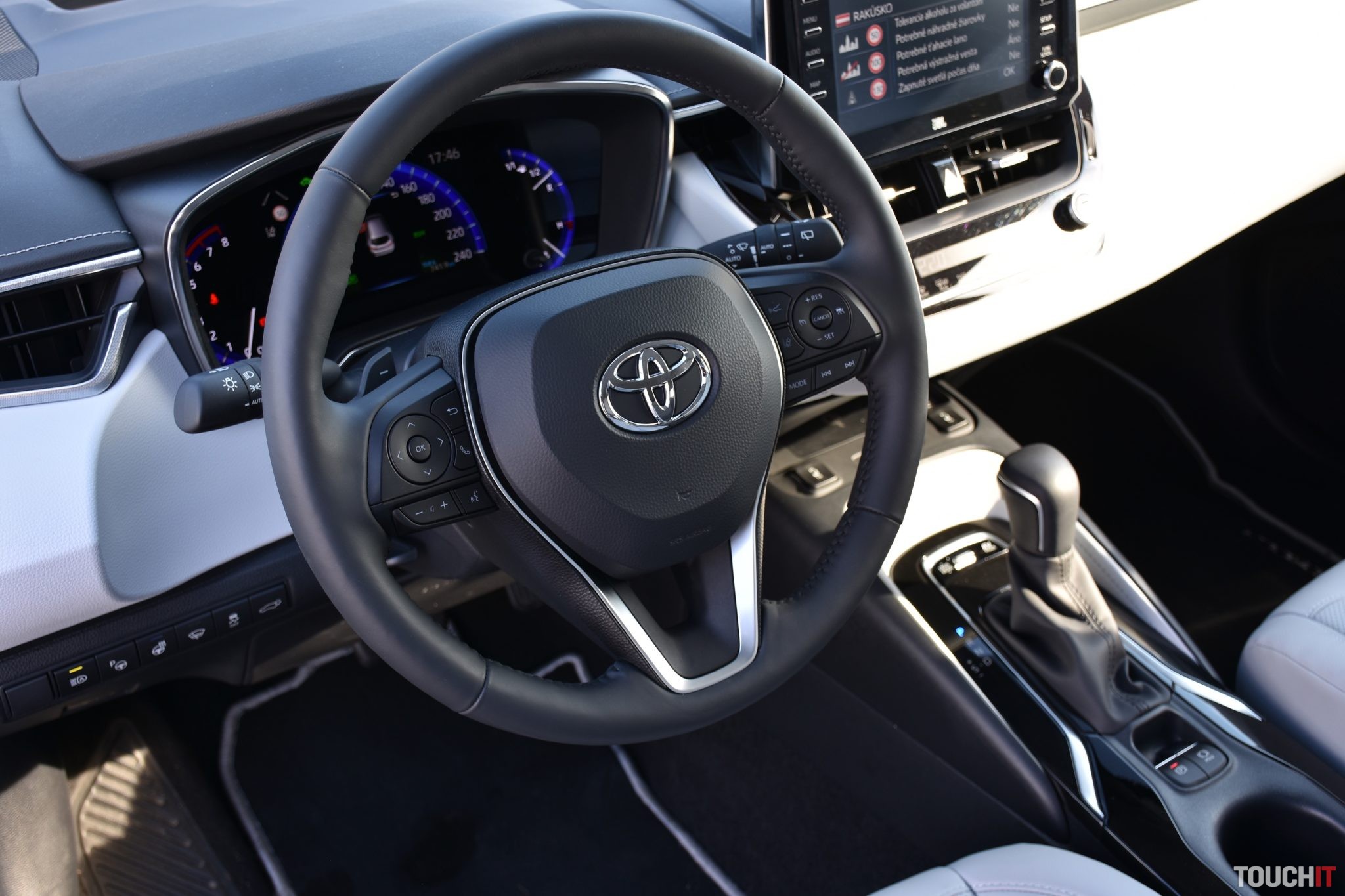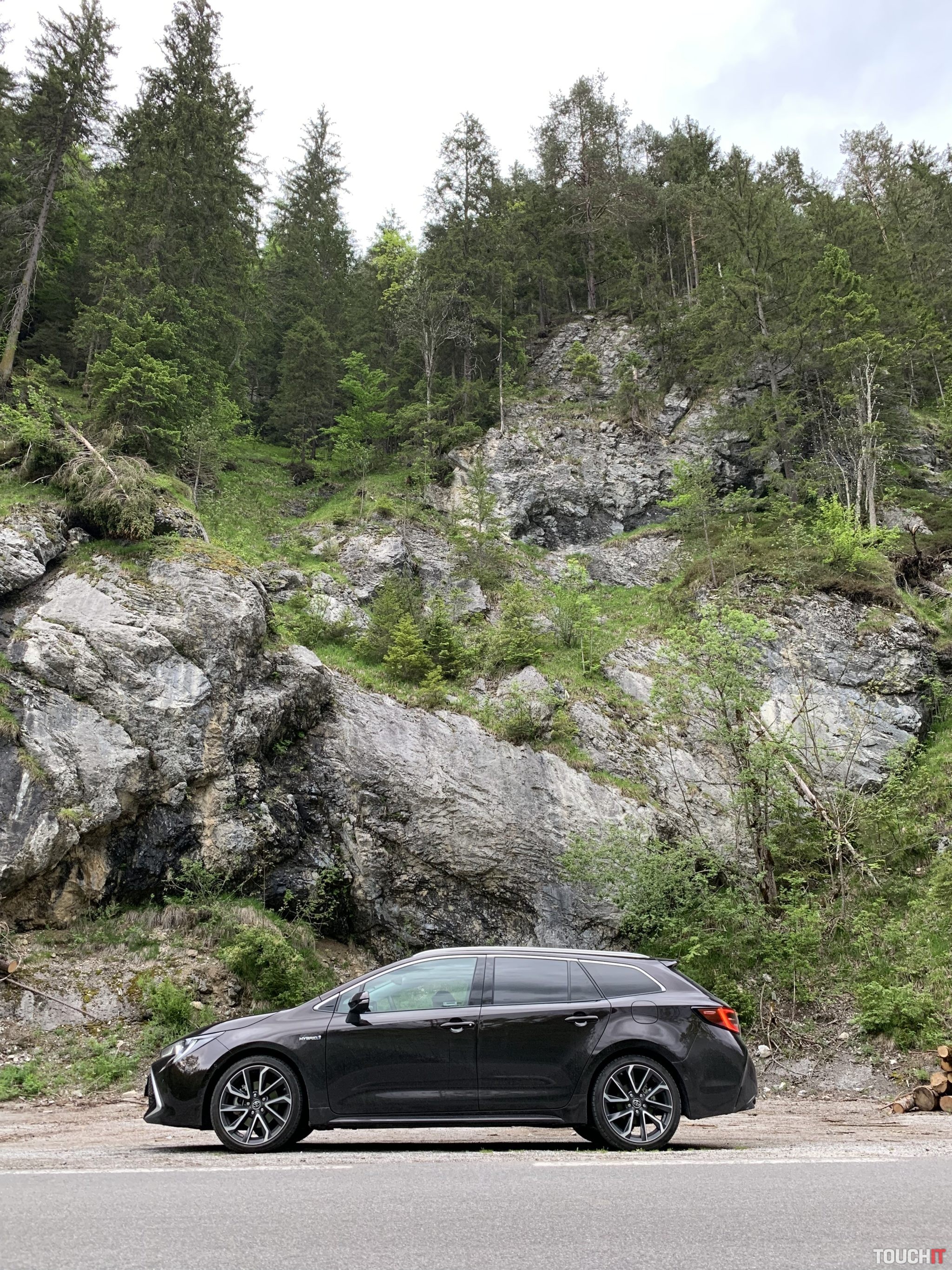 Ako vyskúšať rodinný hybrid čo najlepšie? Tak znela otázka a onedlho bola na svete aj odpoveď, ideme sa pozrieť do álp! Teda na ich začiatok, ale aj to sa počíta. Navštívili sme krásne pútnické mestečko Mariazella končili sme v dedinke Wildalpen (Štajersko) – ktorá je rajom pre rafterov. A tak sme vyskúšali aj to, ako je to s priestorom – ideme štyria, dvaja dospelí a dve deti. Avšak, v prvom rade sa zameriame na to, ako je to s ekonomikou prevádzky tohoto modelu. Prvá polovica týždňa bola aj o diaľniciach, kde sa hybridná Corolla vôbec nestratí, ale extra ekonomické to nebude. Prišiel víkend, my sme sa zbalili a vyrazili na cestu. Hneď na začiatku musíme oceniť vnútorný priestor pre pasažierov, precízne vyhotovenie interiéru a použité materiály. Boli sme veľmi prekvapení, kam sa tento model posunul. Predné sedadlá s unikátnym dizajnom a v bielej koži sú nie len pekné, ale aj pohodlné (elektricky ovládané bedrové opierky + vyhrievanie), majú príjemné bočné vedenie a počas našej cesty sme nepociťovali žiadny diskomfort. Palubná doska v čierno bielej kombinácii, ktorú oddeľuje vzorovaná hliníková lišta nás úplne dostala – sedíme v Corolle alebo v nejakom Lexuse? Veľmi pekné! Ovládacie prvky sú rozmiestnené prijateľne na to, aby sa k nim šofér vedel ľahko dostať bez hľadania, ale nie všetko je ideálne. Zo stredu palubnej dosky vytŕča 8“ dotykový LCD displej systému Toyota Touch 2, ktorý má zvláštne ovládanie a hardvérové tlačidlá, ktoré sa sem nehodia. Hmm, čo už. Ocenili sme však 2-zónovú klimatizáciu s klasickým ovládaním a vyhrievaný multifunkčný volant, s ktorým sa dobre pracuje. Sú na ňom všetky prvky, ktoré potrebujeme mať „pod palcom“ a dokonca aj správne umiestnené (myslíme tým ovládanie hlasitosti na ľavej strane). Ak nemáte držiak na telefón, tak medzi potenciometre na klimatizačnom panely sa pekne zmestí napr. iPhone XS Max a veľmi dobre tu drží :). Ak používate navigačné aplikácie, tak smartfón budete potrebovať mať na očiach. Systém vozidla je síce použiteľný, ale aplikácie ako Apple CarPlay a Android Auto nepodporuje, čo je škoda. Dostatočne široký a od palubnej dosky oddelený stredový tunel pohltil tlačidlá nastavenia jazdných režimov, parkovacej brzdy, ale aj ovládač e-CVT prevodovky. Tesne pod palubnou doskou je podložka s bezdrôtovým Qi nabíjaním pre smartfón, ktorý ak tam vložíte, tak na 90% zapnete aj vyhrievanie sedadla, čo nie je príjemné ani praktické. Kolískové ovládače vyhrievania sú zastaralé a ešte aj zle umiestnené. Samozrejmosťou je aj lakťová opierka s úložným priestorom, kde nájdete jeden USB-A port a 12V zásuvku. Druhý USB-A port je skrytý v palubnej doske aj s 3,5 mm audio konektorom. Takže, vpredu sa nám sedelo na danú kategóriu nadpriemerne, posed za volantom je síce nízky, ale výborný, pričom ceníme aj perfektný výhľad z kabíny. A čo deti vzadu? Tie sa na kľukatých horských cestičkách cítili veľmi dobre, priam až tak dobre, že jedno z nich vrátilo raňajky späť na svetlo sveta. Nevadí, prezliecť, vyčistiť a pokračujeme, ale už pomalšie! Zadní pasažieri majú v kombi verzii slušný priestor na nohy a hlavu, ale záleží od toho, kto sedí vpredu. Za dvojmetrovou osobou je priestor pre útlejšieho dospelého, normálneho tínedžera a super priestor pre dieťa. Ak by šoférovala mamička, tak sa sem pohodlne zmestím aj ja, ale hlavu by som si šúchal. Takže, bežné postavy sa budú v druhom rade cítiť pohodlne. Deťom sa páčila aj lakťová opierka s držiakmi na nápoje, pričom počas horúceho dňa ocenili aj samostatný výduch ventilácie vzadu. Ten sa zíde aj v zime. Teraz skočíme do batožinového priestoru, do ktorého som dal kočík, pár tašiek, pracovný ruksak a ešte ostalo miesto na pohostenie. Milujem jesť pri aute počas dlhých ciest – tripov, pričom si z kufru robím pomyselný stolík (Miro, ty si nomád!).To kufor spĺňa a stále ostáva miesto, takže na dovolenku sa zbalíte bez väčších problémov. Navyše, kufor má dvojité dno a pod podlahou je čierna diera, fakt, mega priestor na množstvo vecí alebo dojazdové koleso. Základný objem batožinového priestoru činí 581 litrov. Po sklopení zadných operadiel sa vytvorí takmer rovina (dá sa tu aj spať) a kapacita sa zvýši na viac ako dvojnásobok. Praktickým doplnkom na záver je elektricky ovládané veko batožinového priestoru s možnosťou nastavenia výšky otvárania cez palubný počítač. Poďme jazdiť! Najprv technické údaje. Testovaný model disponoval najvýkonnejšou hybridnou jednotkou, ktorej základom je 2-litrový 4-valec s výkonom 112 kW a max. krútiacim momentom 190 Nm. Dôležitou súčasťou základnej jednotky je elektromotor a výkonom 80 kW a max. krútiacim momentom 202 Nm. Maximálny výkon tejto zostavy činí 132 kW (180ps) a všetká sila je na predné kolesá prenášaná prostredníctvom e-CVT prevodovky (bezstupňovej). Táto kombinácia je príjemná, prevodovka sa správa kultivovane a systémový výkon je veľmi slušný. Ocenil som ho hlavne na okresných cestách počas prudších manévrov a predbiehania. K dispozícii je aj manuálne radenie pod volantom, ale to je skôr na okrasu. Dostupné sú tri základné jazdné režimy – Eco, Normal, Sport + jeden čisto elektrický EV. Ten využijete iba vtedy, ak je batéria dostatočne nabitá a akcelerujete veľmi opatrne. Vydrží však iba chvíľku, ale to nepovažujeme za nevýhodu. Podstatou je kombinovaný hybridný režim a relatívne účinná rekuperácia, vďaka ktorej sa vracia prebytočná energia späť do batérie, ktorá poháňa elektromotor počas rozbiehania a kľudnej jazdy (priali by sme si možnosť nastavenia intenzity rekuperácie). Vďaka tomuto systému, ktorý pracuje plne automaticky 