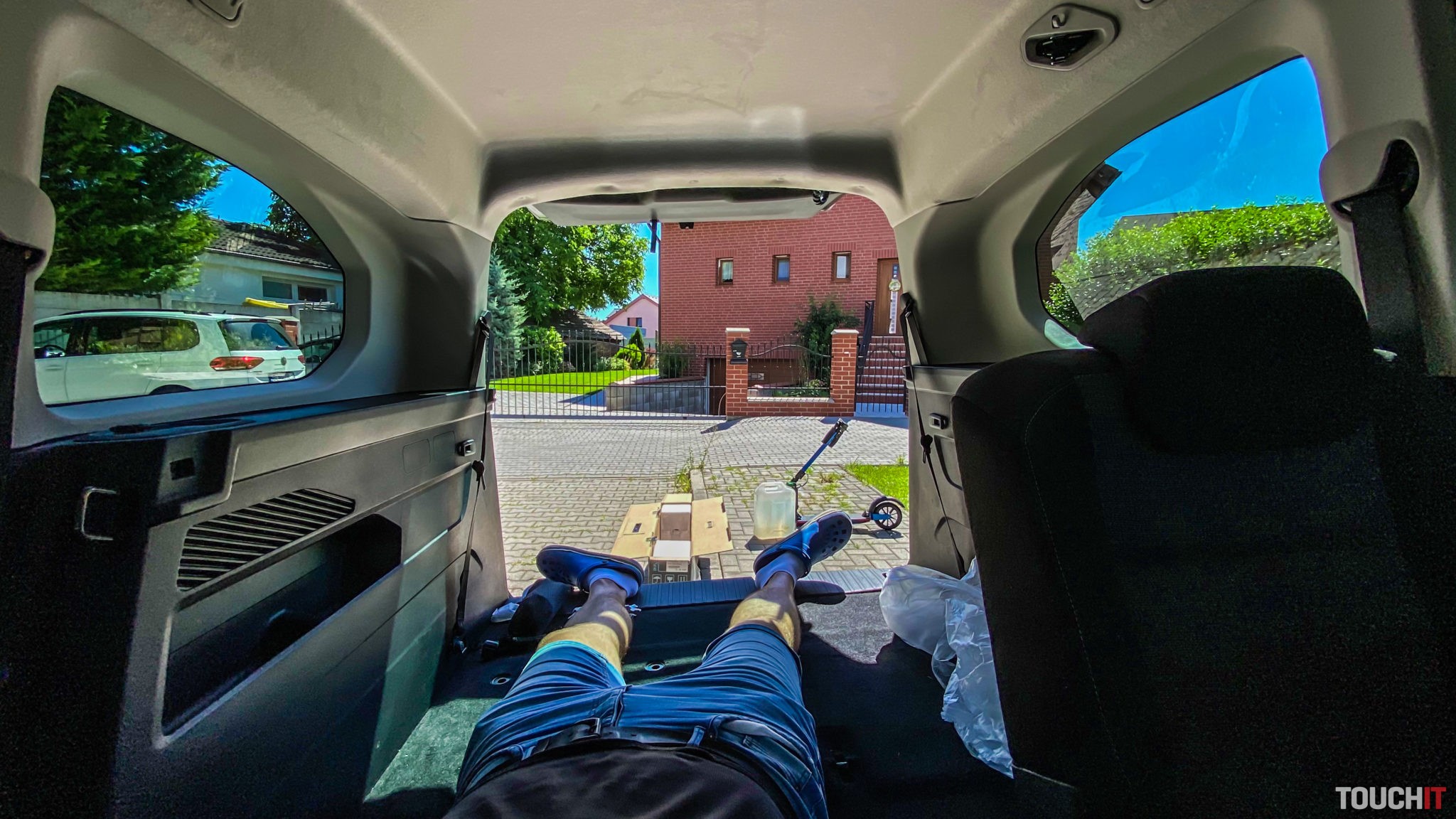 Sedenie za volantom by bolo podstatne komfortnejšie, ak by bol pri kolenách trošku vyrezaný. V jeho útrobách sa síce nachádza veľký odkladací priestor, no nie taký veľký ako je samotný tunel – je tam extra veľa nevyužitého miesta + je to v rámci sedenia nekomfortné. Polohu za volantom som si našiel hneď, aj posed je super, no ten stred považujem za mínus. V tak veľkom aute očakávam viac komfortu v oblasti kolien. Inak nemám výhrady, výhľad je fajn a na zvláštne spätné zrkadlá som si už zvykol :). Cením aj odkladaciu poličku nad hlavou, čo vo výsledku znamená veľa možností na odkladanie rôznych vecí, vrátane nápojov. Dokonca je v tejto výbave aj podložka s bezdrôtovým nabíjaním na telefón! Skočme rovno dozadu, kde sú 3 plnohodnotné sedadlá s možnosťou sklopenia do podlahy, čím vznikne šikmá rovina :). Každé sedadlo má ISOfix a nechýbajú ani 2 stolíky v operadlách predných sedadiel. Priestoru v druhom rade je na rozdávanie, a to pre všetky vekové, výškové a váhové kategórie, čo je veľkým benefitom. Páči sa mi aj prítomnosť výduchov pre zadných pasažierov, USB-A porty a 12V zásuvka na nabíjanie zariadení. Mrzí ma iba to, že operadlá nie sú polohovateľné (a sedadlá samostatne posúvateľné), čo je pre dobrý spánok detí celkom dôležité. Dobre, teraz tretí rad. Miro, a čo je to autobus? Skoro, priatelia, skoro!