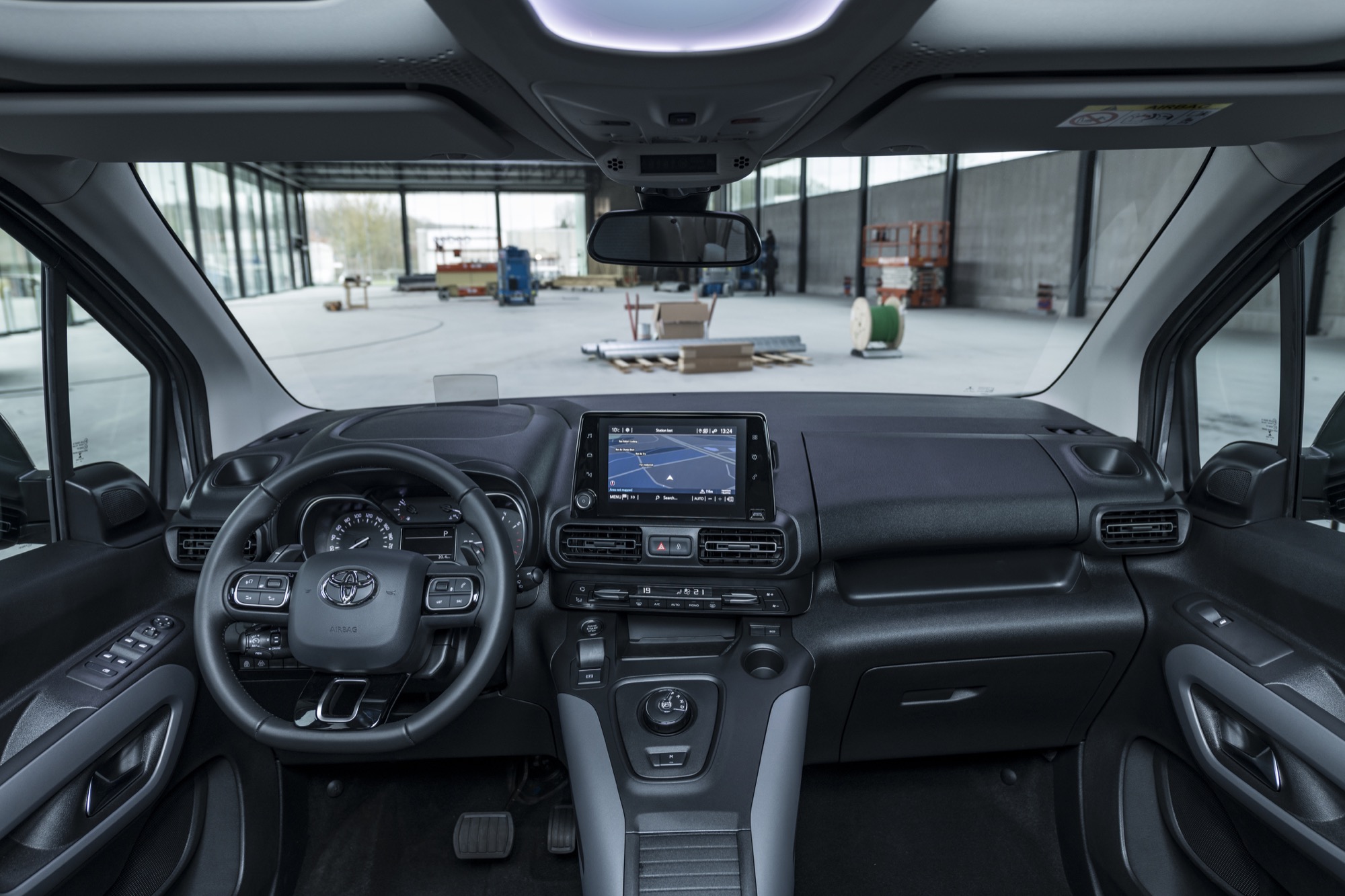 Aby som nezabudol – jazdné vlastnosti! Proace jazdí dobre, podvozok je v rámci možností a kategórie komfortný, zadok neskáče a aj s našimi cestami si vie hravo poradiť. Na 17“ diskoch (205/50/R17) je to ideál – aj vyzerá, aj funguje. Kolega, ktorý vlastní nového Riftera tvrdí, že je Toyota trošku tvrdšia, no ja som tento aspekt nebadal. To je jasný dôkaz toho, že každý to vnímame inak, a preto si treba každé auto pred kúpou odskúšať alebo čítať naše recenzie :). Btw: malú námietku mám na vyššiu hladinu hluku pri vyšších rýchlostiach, inak pohoda. Malá dodávka, veľké možnosti – technologické možnosti! Ak by ste si náhodou mysleli, že toto bude neohrabaný kus auta bez pokročilých systémov, tak vás rád vyvediem z omylu. Toyota Proace City Verso vo verzii Family ponúka plnohodnotnú flotilu multimédií a asistenčných systémov, z ktorých niekoľko vypichnem. Začnem 8“ dotykovým LCD displejom v strede palubnej dosky, ktorému sekunduje malý head-up displej s informáciami o vozidle/aktuálnej trase a do tretice je to prehľadný prístrojový panel s malým 3,5“ LCD displejom medzi analógovými ukazovateľmi. Prehľadné, známe a praktické.