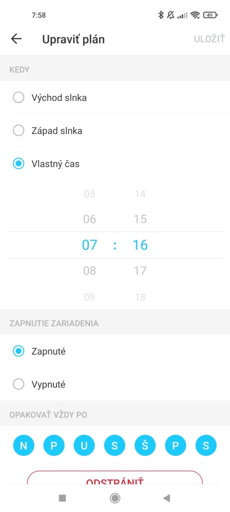 Okrem presných časov v dni sa dá nastaviť aj časovač a opäť definujete stav, či sa napríklad po uplynutí 20 minút zariadenie vypne alebo zapne.