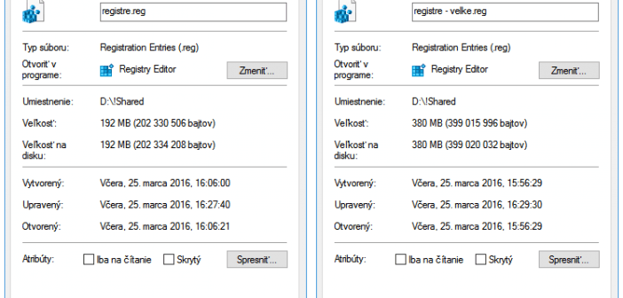 Vyexportujme si celé registre a pozrime sa na ne. Majú 192 MB a ak tento textový súbor horko ťažko otvoríme, zistíme, že obsahuje zhruba jeden a pol milióna riadkov (konkrétne 1 710 975).