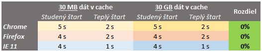 Poďme to teda skúsiť. Natlačme 30 GB dát v podobe 100 000 súborov do cache prehliadačov a skúsme prehliadač spustiť. Sledujme pri tom, ako sa zmenia na slimákov.
