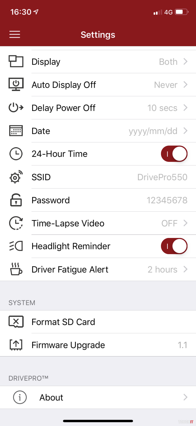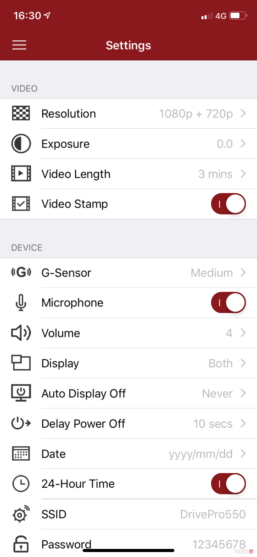 Poznatky z praxeTranscend DrivePro 550 je po funkčnej a praktickej stránke vydarená autokamera, ktorá má jednoduché ovládanie a výbornú aplikáciu. Za nevýhodu považujeme jej veľkosť, ktorá môže byť pre niekoho prekážkou. Vhodná bude skôr do väčších áut, prípadne do dodávok a kamiónov. Oceniť musíme kvalitu záznamu z oboch snímačov – počas dňa aj za zníženej viditeľnosti, resp. v noci. Kameru sme vyskúšali v rôznych podmienkach a v 90 % prípadov boli zaznamenané súbory použiteľné, čo je podstatou takéhoto typu zariadenia! Vďaka integrovanej batérii je zabezpečené, že počas krátkodobého výpadku napájania dokáže kamera aj naďalej zaznamenávať obraz. Napokon treba spomenúť aj použiteľný záznam zvuku. Aplikácia DrivePro Výhodou je Wi-Fi konektivita a teda aj možnosť využiť aplikáciu – DrivePro (zdarma pre iOS a Android), ktorá ponúka sledovanie obrazu z kamery v reálnom čase, prezeranie záznamov, a tiež ich sťahovanie priamo do telefónu, vďaka čomu nie je potrebné vyťahovať microSD kartu a vkladať ju do PC. Okrem toho ponúka aplikácia rovnaké možnosti, resp. nastavenia ako kamera. Nastavenia a správa zariadenia je cez aplikáciu pohodlnejšia. Prepojenie je jednoduché, v kamere aktivujete Wi-Fi, na ktorú pripojíte váš smartfón s aplikáciou DrivePro. To je všetko, jednoduché a rýchle riešenie (na rovnakom princípe fungujú aj iné kamery). Pre Windows zariadenia je dostupný aj program DrivePro ToolBox, kde si môžete záznamy z kamery prezerať ešte podrobnejšie, vrátene zobrazenia trás na mape. Vidíte tak rýchlosť v určitých bodoch a pod.