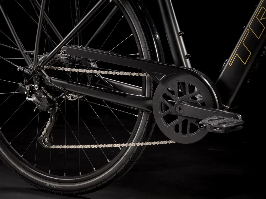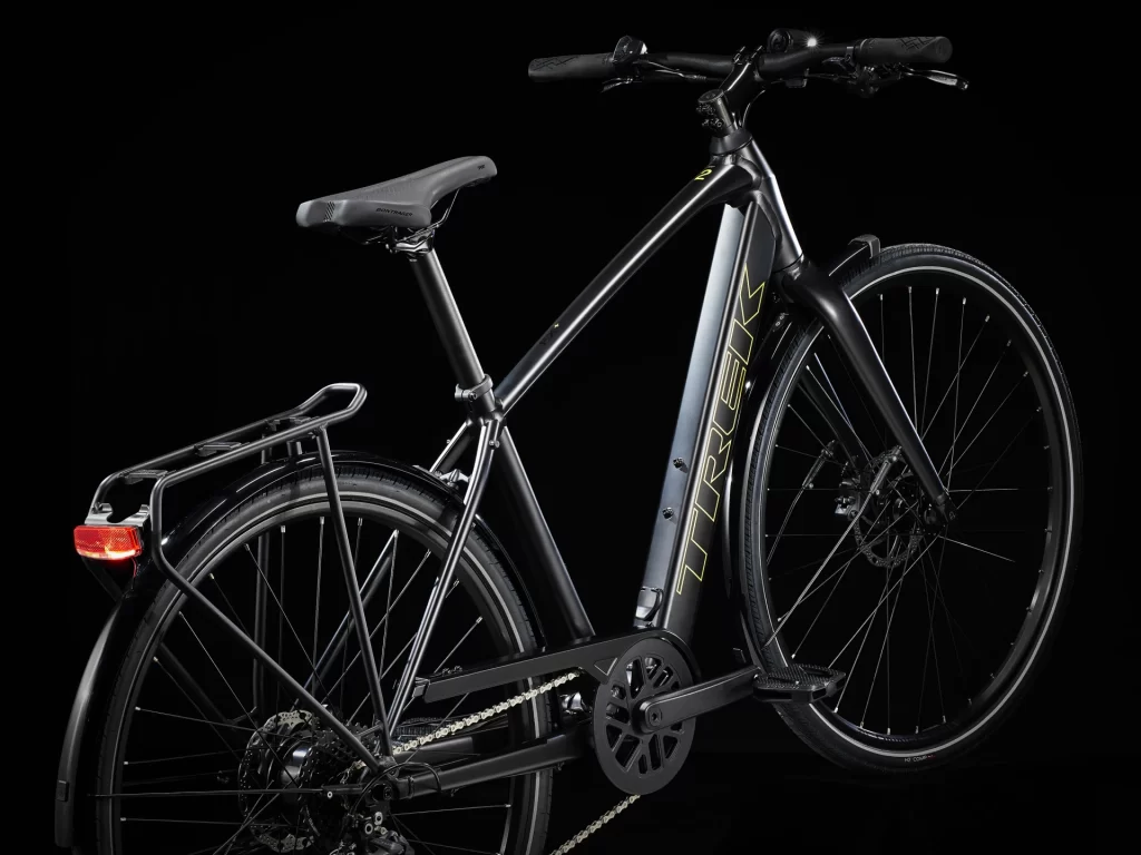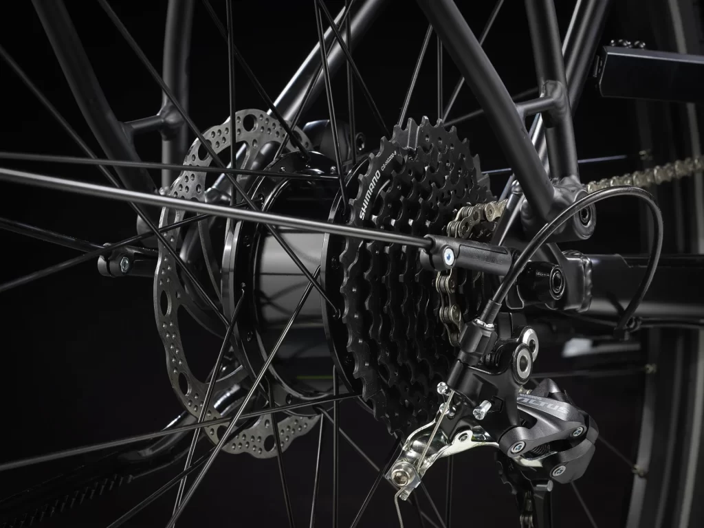Motor je dopovaný z 250-watthodinovej batérie v ráme, ktorá ponúkne dojazd na úrovni 56 kilometrov. Samozrejme, v závislosti od zaťaženia a aktuálnych podmienok. Bicykel má maximálnu nosnosť 136 kilogramov a zadný nosič, ktorý je súčasťou štandardnej výbavy, dokáže odniesť až 25 kilogramov. Okrem toho je samozrejmosťou Bluetooth prepojenie systému bicykla s vaším telefónom (aplikácia Trek Central), ale aj malý ovládač režimov asistencie na riadidlách. Okrem asistenčného elektromotora nechýba vo výbave ani 9-rýchlostná prevodovka Shimano Altus M2000, snímač krútiaceho momentu a nepochybne aj kotúčové brzdy Tektro / Promax F1 DSK-927 so 160-milimetrovými kotúčmi.